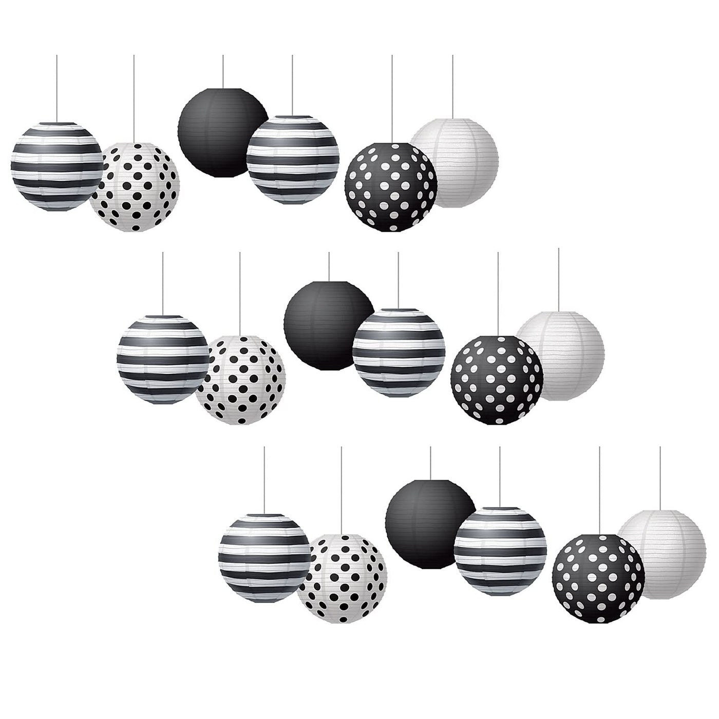 These paper lanterns are made from well-made materials that ensure durability and a stylish appearance. Each lantern measures 8 inches in diameter, making them a versatile choice for various settings. The pack includes six lanterns in a variety of colors and patterns: one white, one black, one white with black polka dots, one black with white polka dots, and two featuring black and white stripes. Sold in packs of three, you will receive a total of 18 lanterns, providing ample options for decorating and organizing your space.