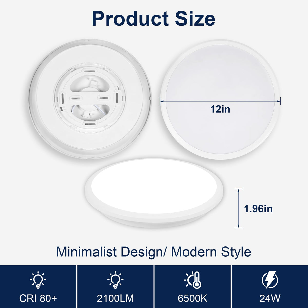 Tealight 12 Inch Round Led Ceiling Light, 6500K Cool White Super Bright Ceiling Light Fixture, Ip54 Waterproof Ceiling Lamp For