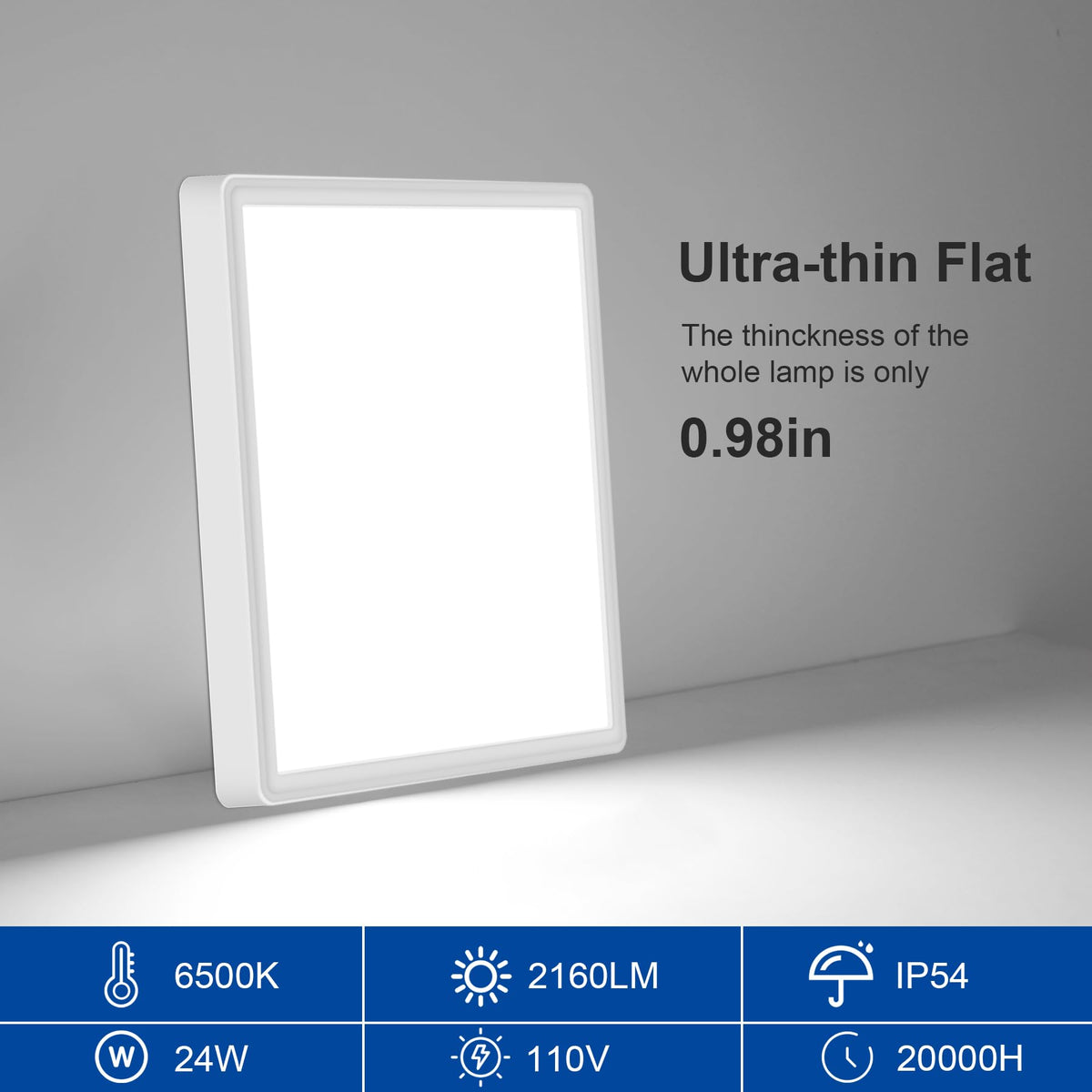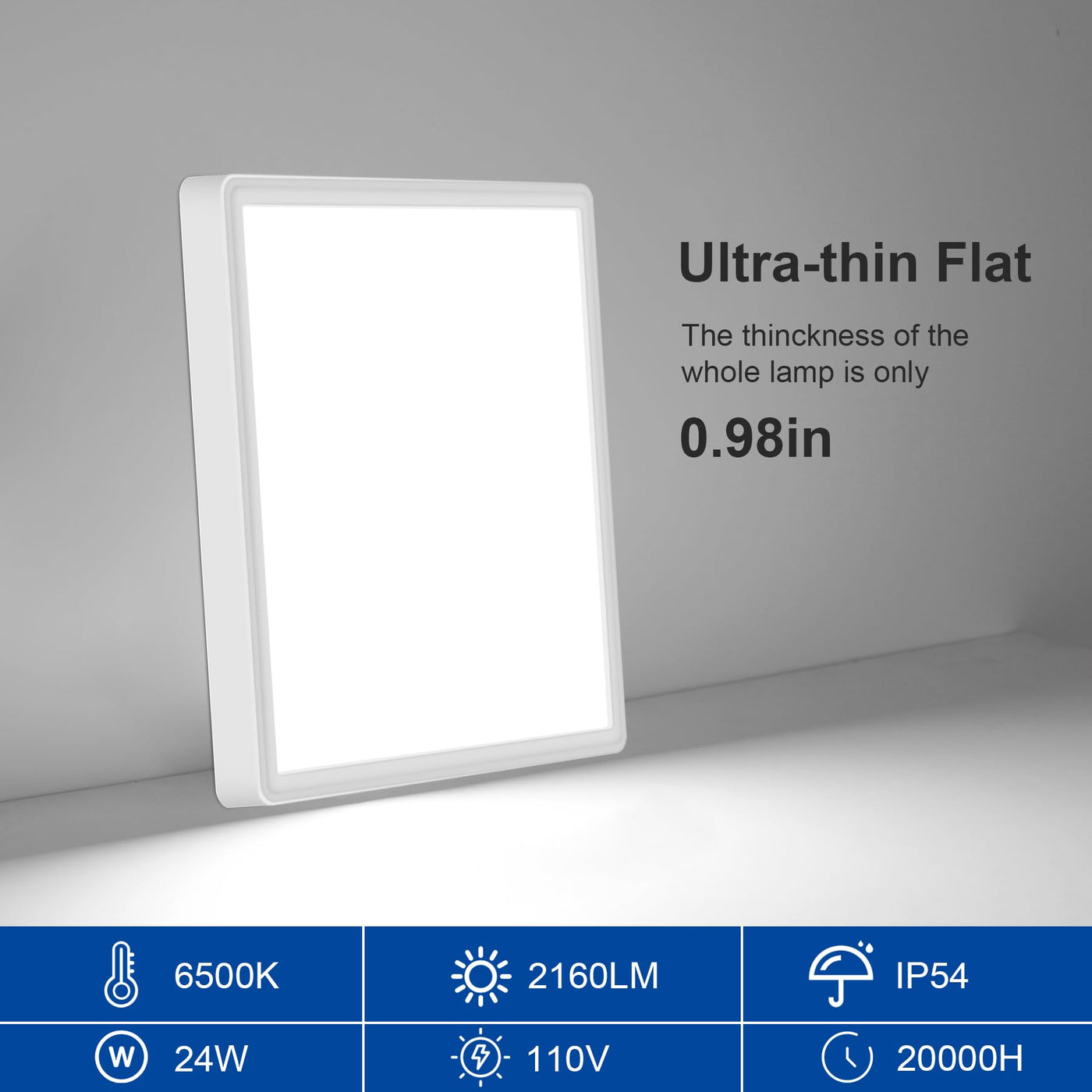 Tealight 4 Pack 12 Inch 24W Flush Mount Square Led Ceiling Light, 6000K White Flush Mount Light Fixture, Slim Flat Ceiling Light