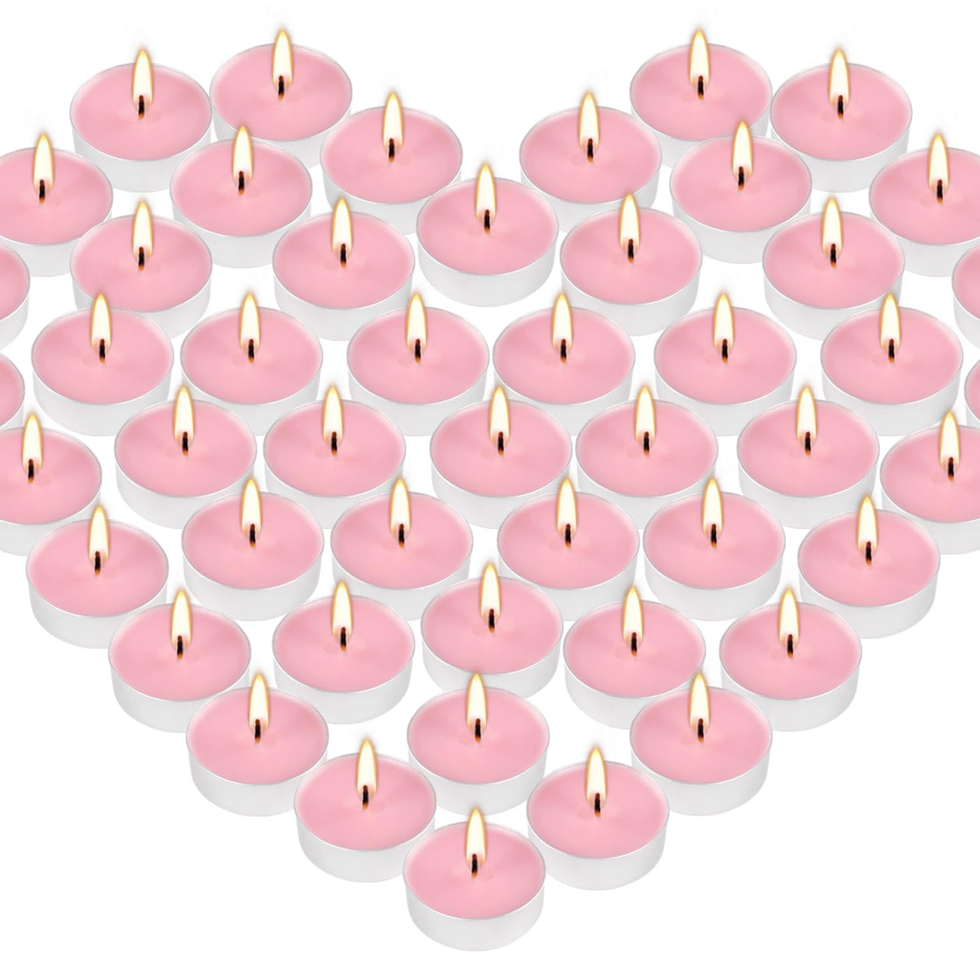 Q: What occasions are these pink tealight candles ideal for?A: These pink tealight candles are perfect for a variety of occasions including weddings, birthdays, anniversaries, Valentine's Day, and festive celebrations, enhancing the ambiance of any event.