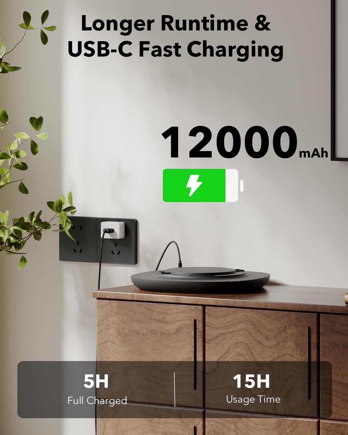 High-capacity 12000mAh rechargeable battery for long-lasting performance.