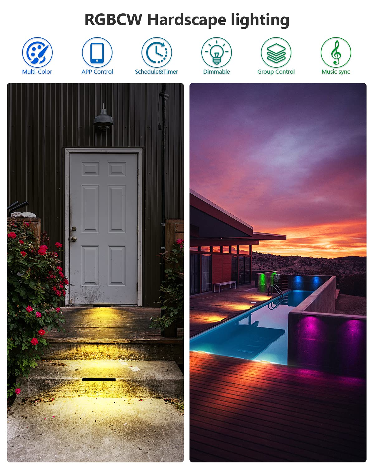 Teekuv 8 Pack 7 Inch RGB LED Hardscape Lighting, 5W Smart Retaining Wall Lights 16 Million Colors with Remote Control, IP65 Wate