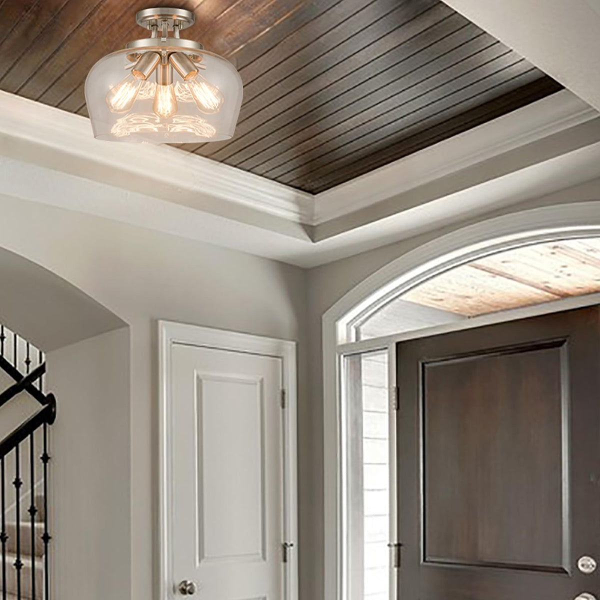 Name: Brushed Nickel Semi Flush Mount Ceiling Light Clear Glass Ceiling Light Fixture Wide Application: This Brushed Nickel Semi Flush Ceiling Light Is A Fantastic Addition To Your Home Interior And Provide Both Function And Style In Your Bathroom, Bedroom, Dining Room, Entryway, Foyer, Hallway, Kitchen, Living Room, And More. Material: Metal, Glass Lamp Holder: E26 Based Light Source Type: Led, Incandescent, Cfl Wattage: Max 60W One Bulb (Bulb Not Included) Voltage: 110V-130V Care Instructions:&Nbsp; 1. Wipe Clean Using A Soft, Dry Cloth Or Static Duster. 2. Avoid Using Harsh Chemicals And Abrasives As They May Damage The Finish. 3. Do Not Exceed Specified Wattage (Max 60W Each Bulb). 4. Please Keep In Mind That None Of The Lighting Products That We Sell Include Light Bulbs.