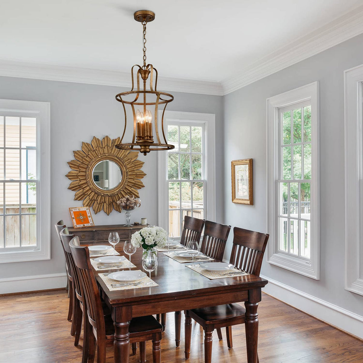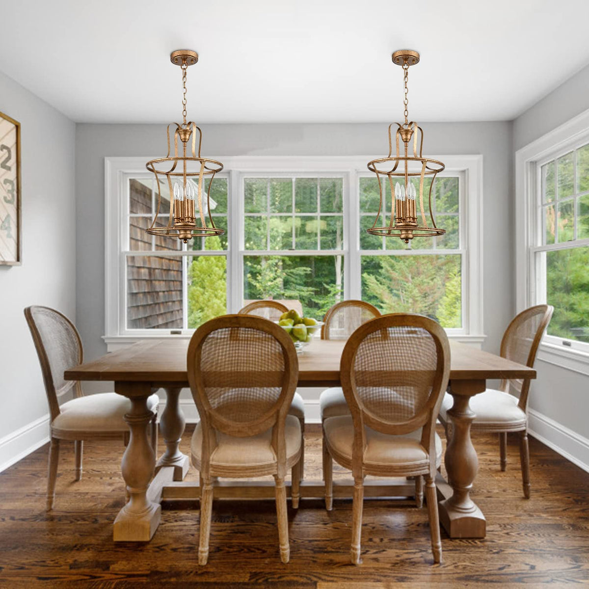 Teenyo Modern Lantern Pendant Light 4-Light Lantern Chandelier Lighting, Rusty Gold Lantern Pendant Lightis For Kitchen Island D