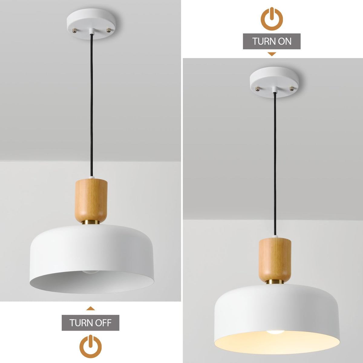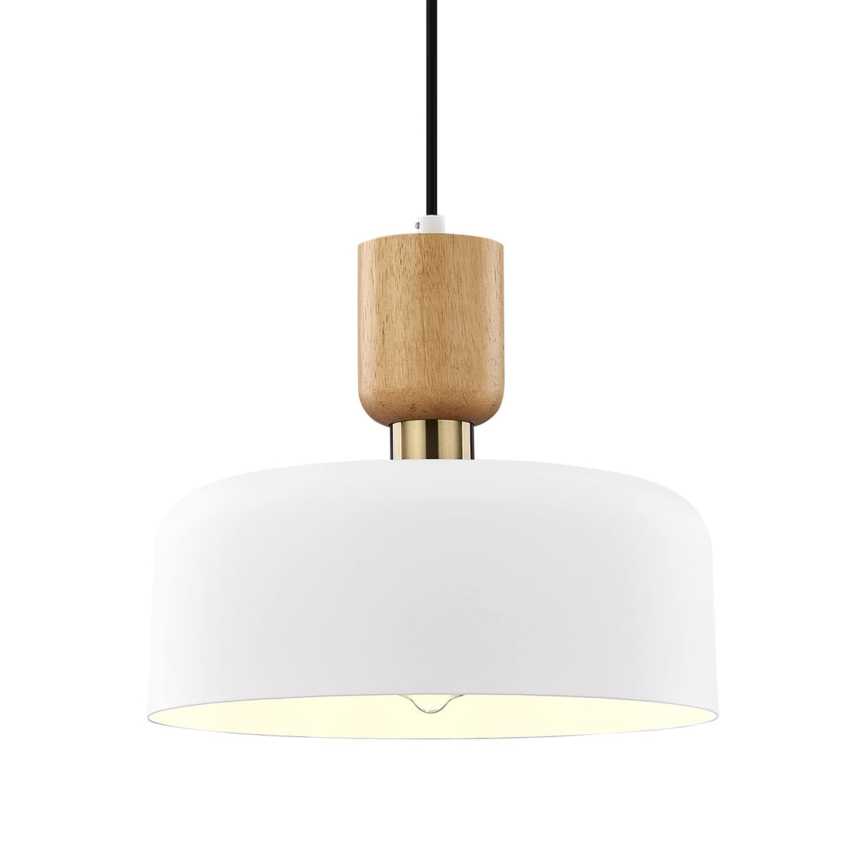 Q: What materials are used in the TeHenoo pendant light's design?A: The TeHenoo Modern Pendant Lighting features a stylish combination of natural wood and brass accents, along with a white metal shade. This blend of materials not only enhances its aesthetic appeal but also contributes to its durability.
