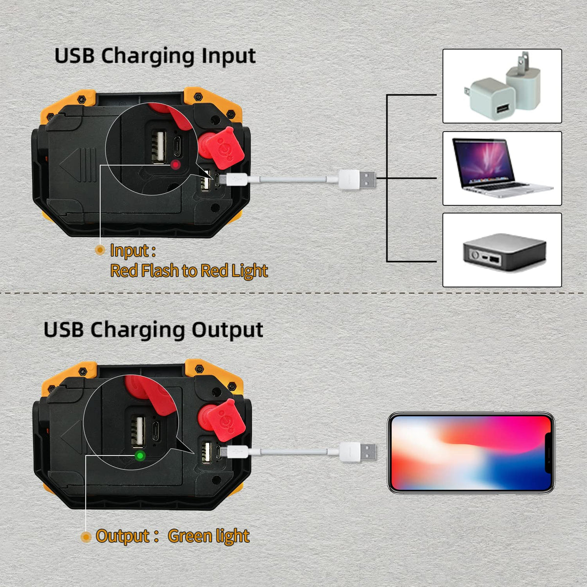 Q: Can the Tekstap LED Work Light be used as a power bank?A: Yes, the Tekstap LED Work Light is equipped with USB input and output, allowing it to function as a power bank. This feature is particularly useful for charging devices in emergencies when you are outdoors.