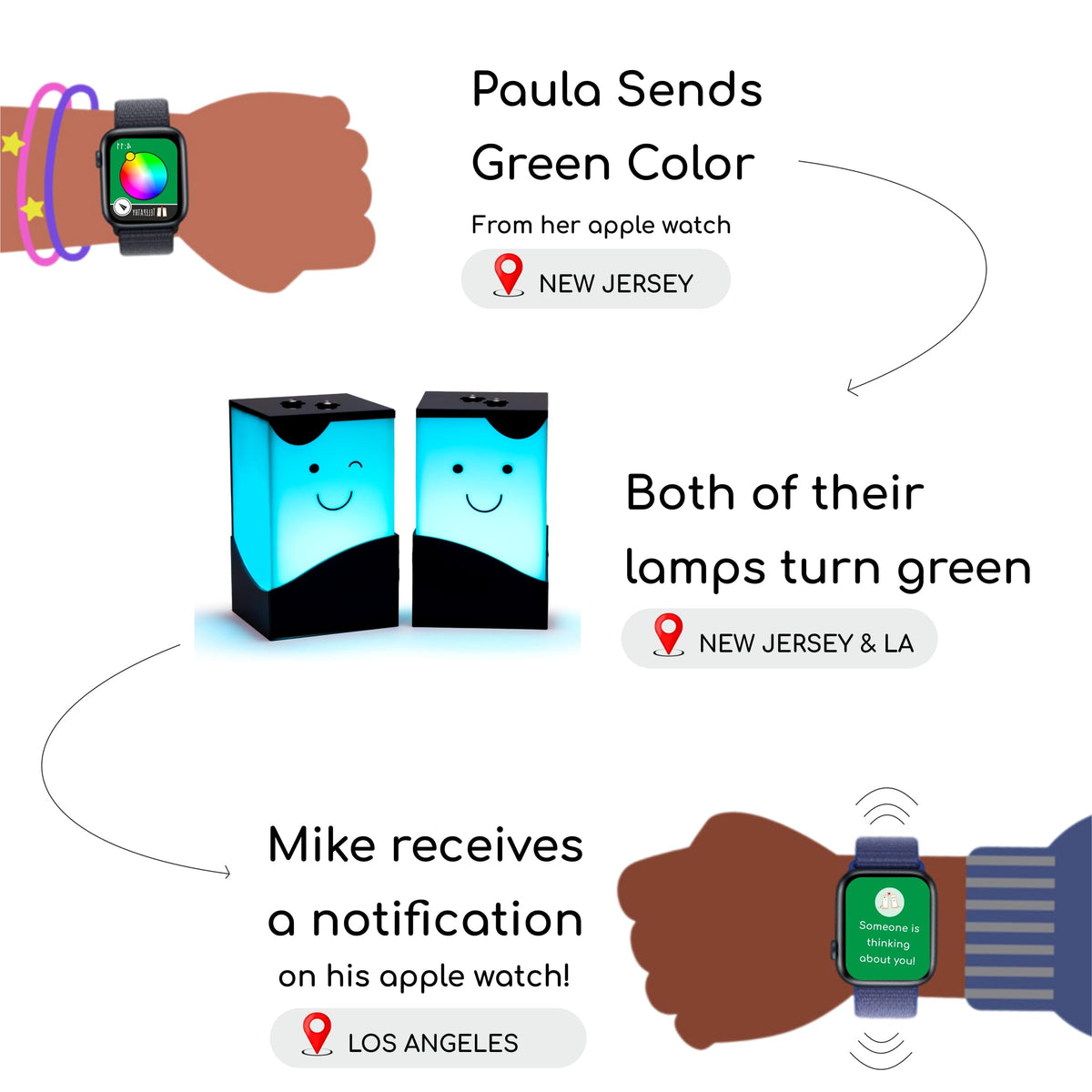 As the name Telepathy suggests these friendship lamps communicate without using words. A simple touch on your lamp will lit up the same color to your loved ones lamp sitting oceans apart from you. And when they respond by touching their lamp back, both the lamps will light a new color! All this is done instantly. Isnt it amazing! With hundreds of colors inside, you can create a language of your own with these Long Distance Lights. Give an emotion to each color and save it. Once you decide a color, all lamps in your connected group will radiate the same shade every time you touch on it. So many times we just like to keep in touch but dont need words to express. Say a kid, who lives away reminding his grandpa of medicine time is now just a touch away. At home, a mom can now just place her palm on Telepathy and her son, working in an office will know that its lunchtime. In a courtship period a couple could use Telepathy to communicate how much they want to be together, without saying or texting a single word. Away from your family back home; this internet connected lamp lets you communicate affection seamlessly. Hence Telepathy is the perfect gift for parents, grandparents, brothers, sisters, BFF, besties, kids, pets or a special someone. Telepathy Lamps provides a free mobile app. Just search ''Telepathy Lamp'' on Play store or App Store and you will get free download. You can use this app for first time easy set-up or even sending colors remotely while on the go, absolutely free for lifetime with no ads or in-app purchases. A glance at Telepathy Toddler is enough to bring smile. It is a representation of two kids having a good play time. This design is the best expression of the emotion involved. Expressing with Telepathy is as simple as playing with your friend. A simple touch and his lamp would light up. All Telepathy Lamps comes with 12 Months software Warranty and Life time free tech support. For any queries please contact us at telepathy@zocivoci.com