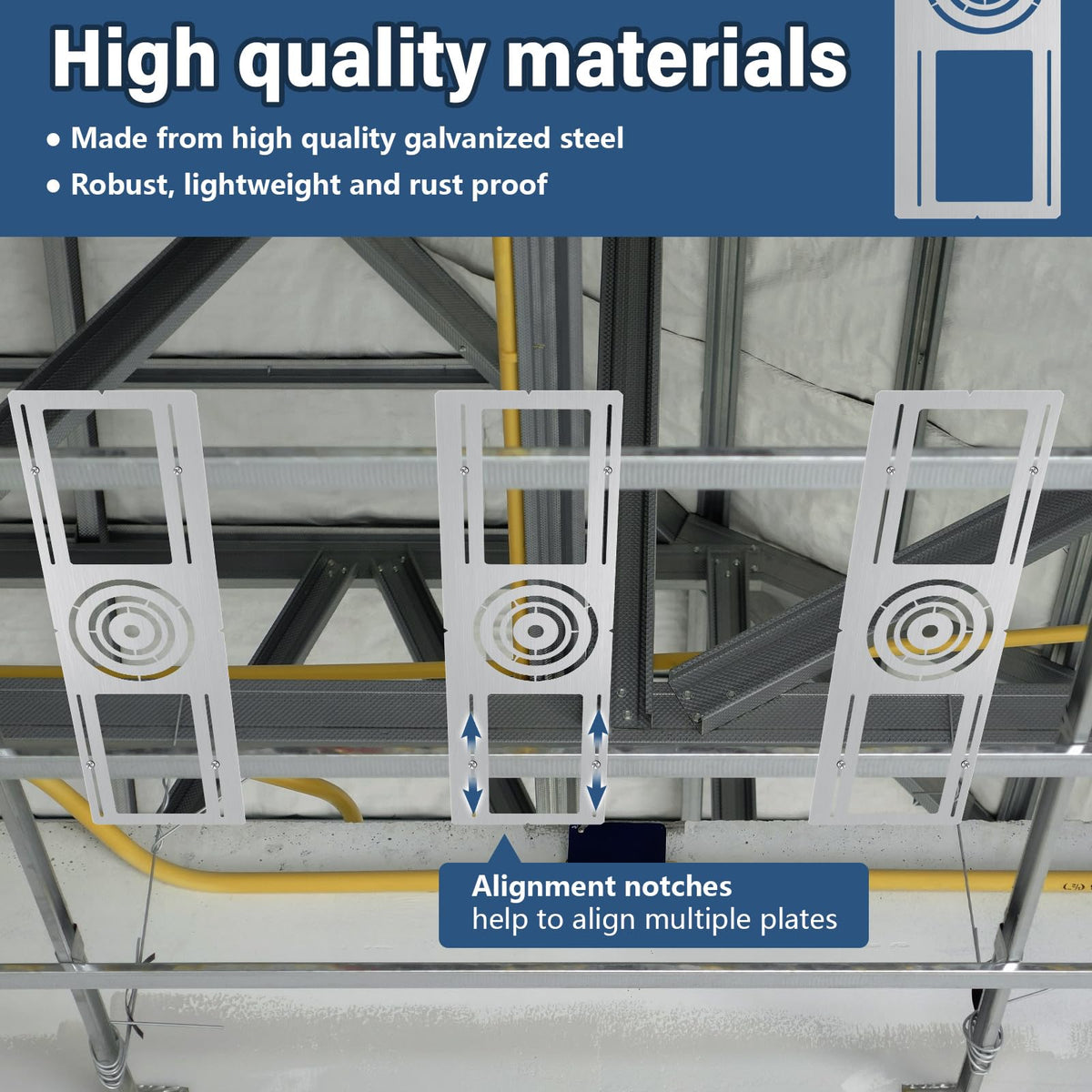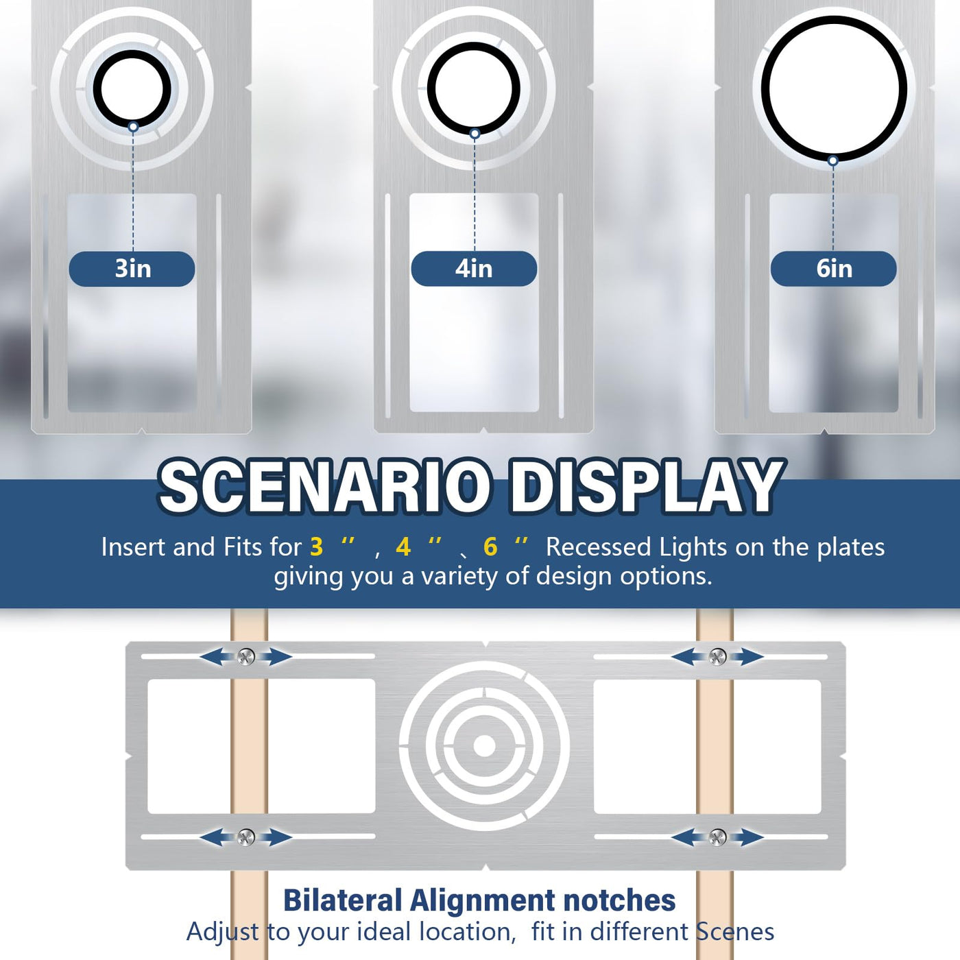Q: How easy is it to install the recessed lighting kits with these mounting plates?A: Installation is quick and easy thanks to the snap-in notches on the plates. Simply adjust the position of the mounting plate and secure it with screws or nails (not included), allowing you to set up your lighting systems efficiently.