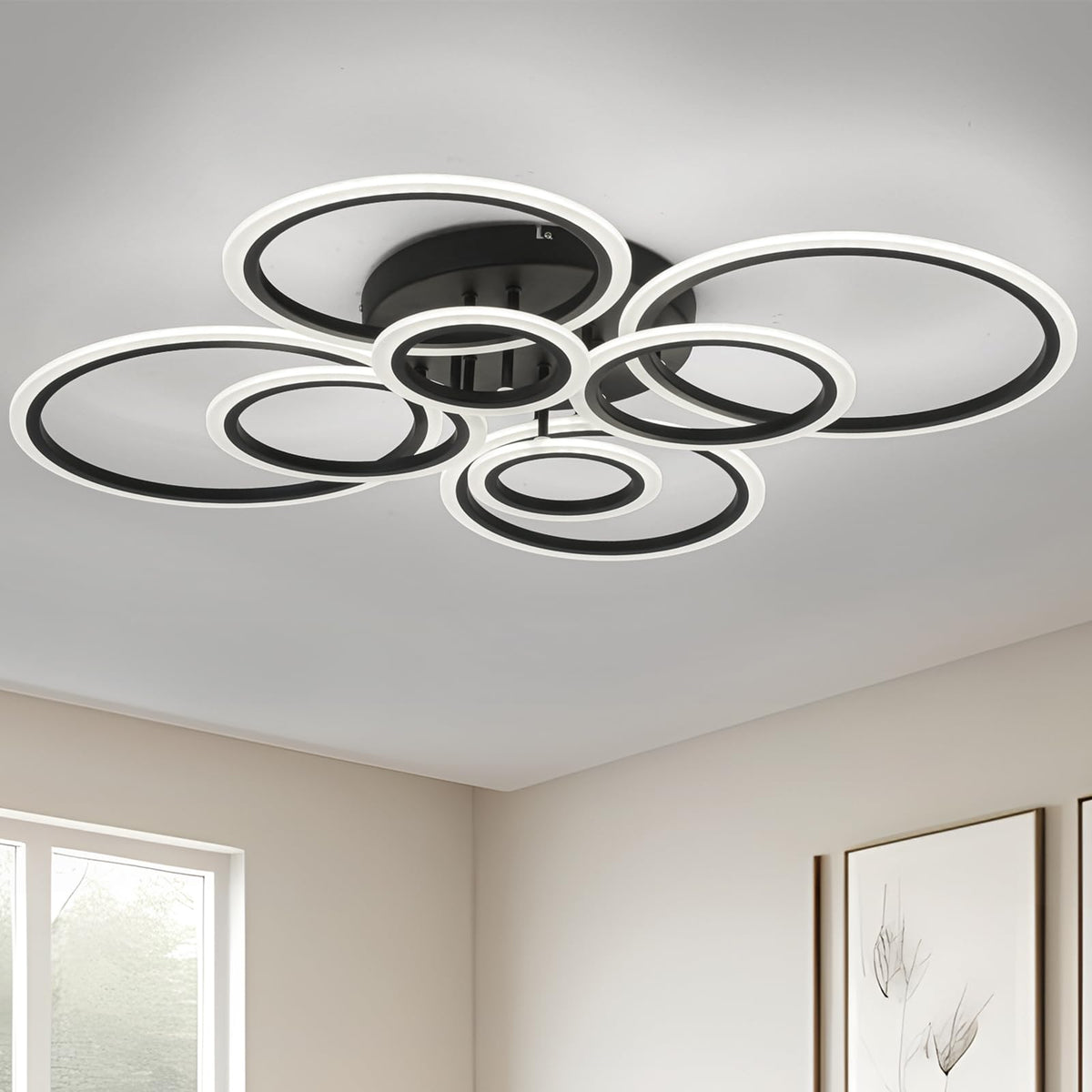 Teminbu Modern Led Ceiling Light, Black 8 Rings Flush Mount Ceiling Light, 4000K Lighting Fixture Ceiling Lamp For Kitchen, Bedr