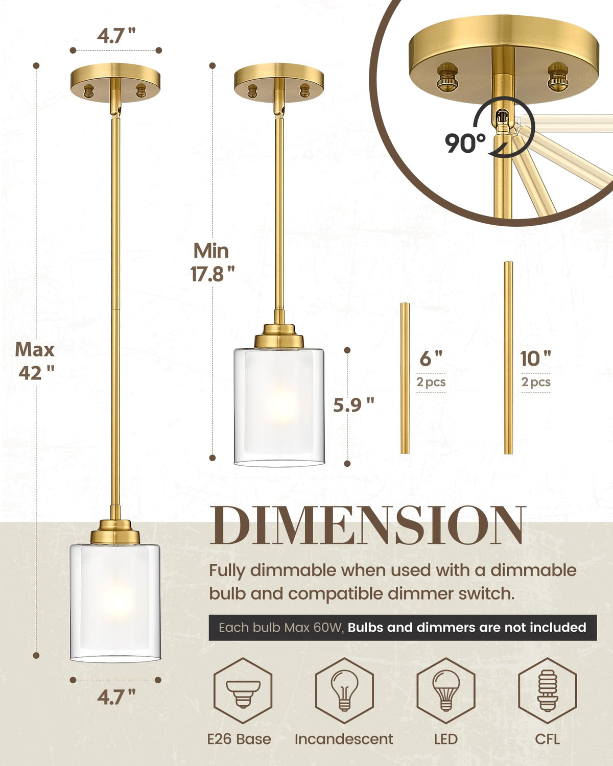 Tengxin Modern Pendant Light,Brushed Gold Modern Pendant Light For Kitchen Island,Hanging Ceiling Light Fixture,Farmhouse Pendant Lighting For Dining Room Bedroom Bar Office 2Pack,Txplbg02-2Pk