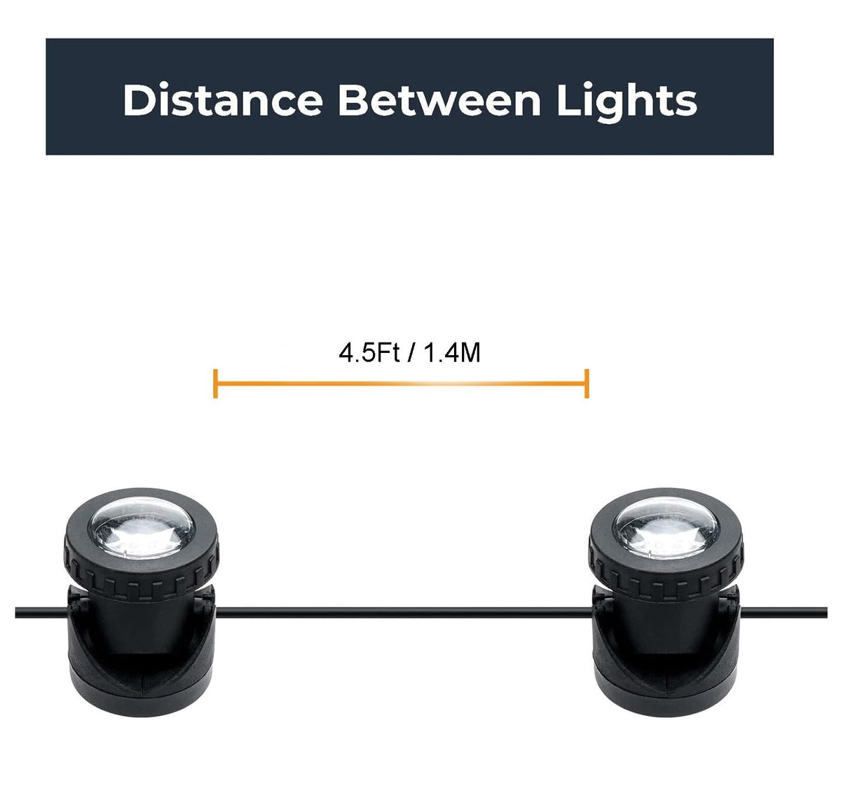 Q: How do I install the TENSUL Pond Lights?A: Installing the TENSUL Pond Lights is straightforward. The lights are connected by a single wire with a 9.8ft length from the plug to the first light and 4.5ft between each light. Simply place the lights in your desired locations in the water, ensuring the connections are above the waterline, and plug them into an electrical outlet.