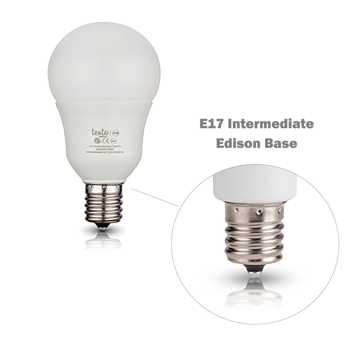 - Energy-efficient E17 LED Bulb using only 5 watts, equivalent to a 40-watt incandescent bulb.