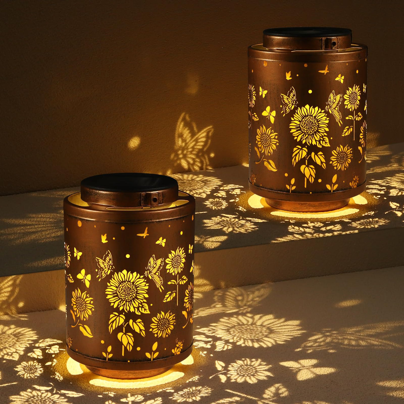 Tepaken 2 Pack Solar Outdoor Lanterns, Garden Decor Led Light Hanging Waterproof Solar Metal Lantern Birthday Gifts For Women Mon Grandma Sunflower Solar Lights Outdoor Decoration(Butterflies)