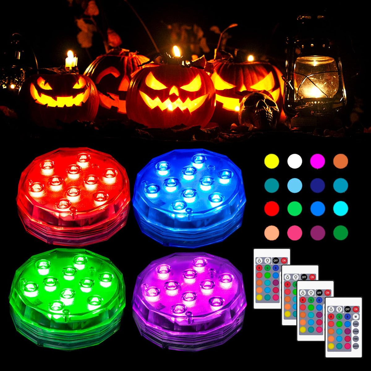 Tepenar Submersible Led Pool Lights, Waterproof Remote-Controlled Color Changing, 4 Pack