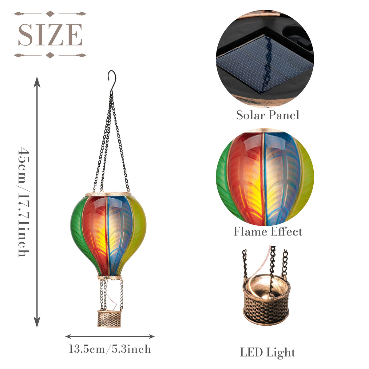 - **Original Design**: This lantern features a unique green hot air balloon design that adds a whimsical touch to your outdoor decor, creating an inviting atmosphere for gatherings and celebrations.