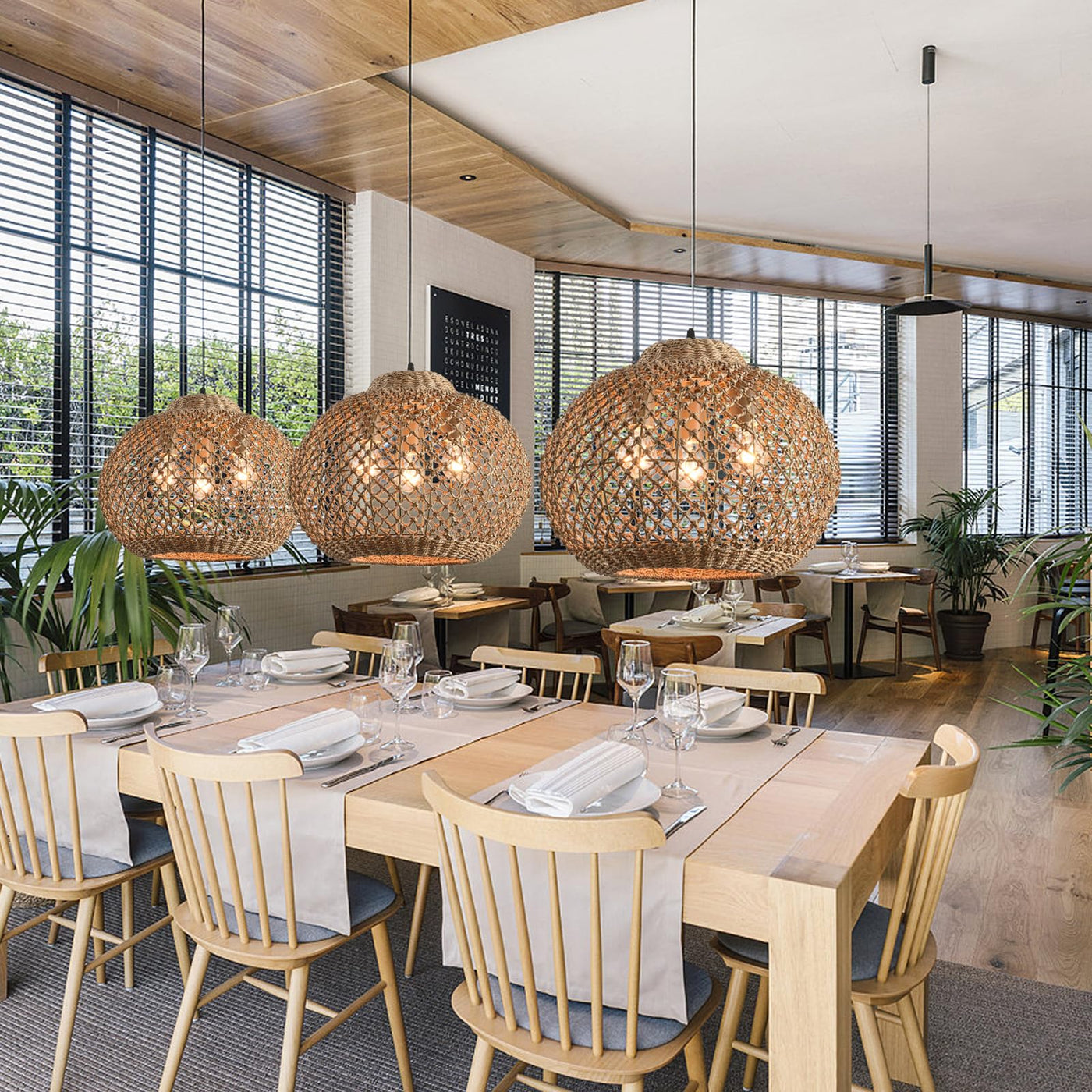 Q: What types of rooms is the Teru Ji Kaikang Rattan Pendant Light suitable for?A: The Teru Ji Kaikang Rattan Pendant Light is versatile and suitable for various settings including dining rooms, living rooms, kitchens, restaurants, cafes, hallways, bedrooms, and more. Its classic tropical style complements a range of interior decor themes.