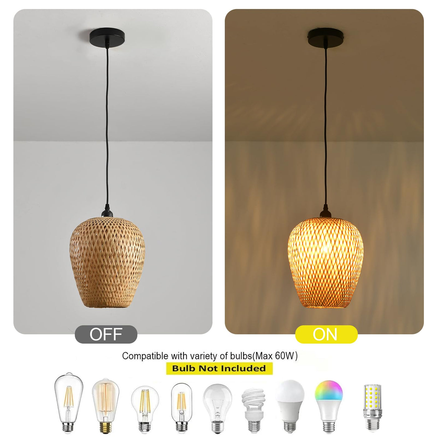 Teru Ji Kaikang 2-Pack Bamboo Lamp Shade,Hand-Woven Bamboo Rattan Hanging Light Shade,D 9.84'' Rattan Table Lamp Shade For Floor
