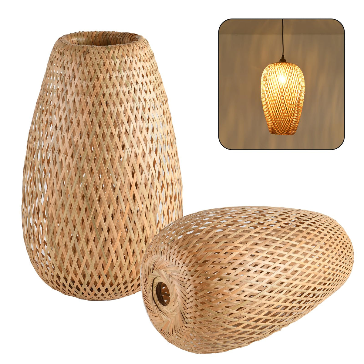 Teru Ji Kaikang Bamboo Lamp Shade, 2-Pack Hand-Woven Bamboo Rattan Hanging Light Shade,D 9.05'' Rattan Table Lamp Shade For Floo