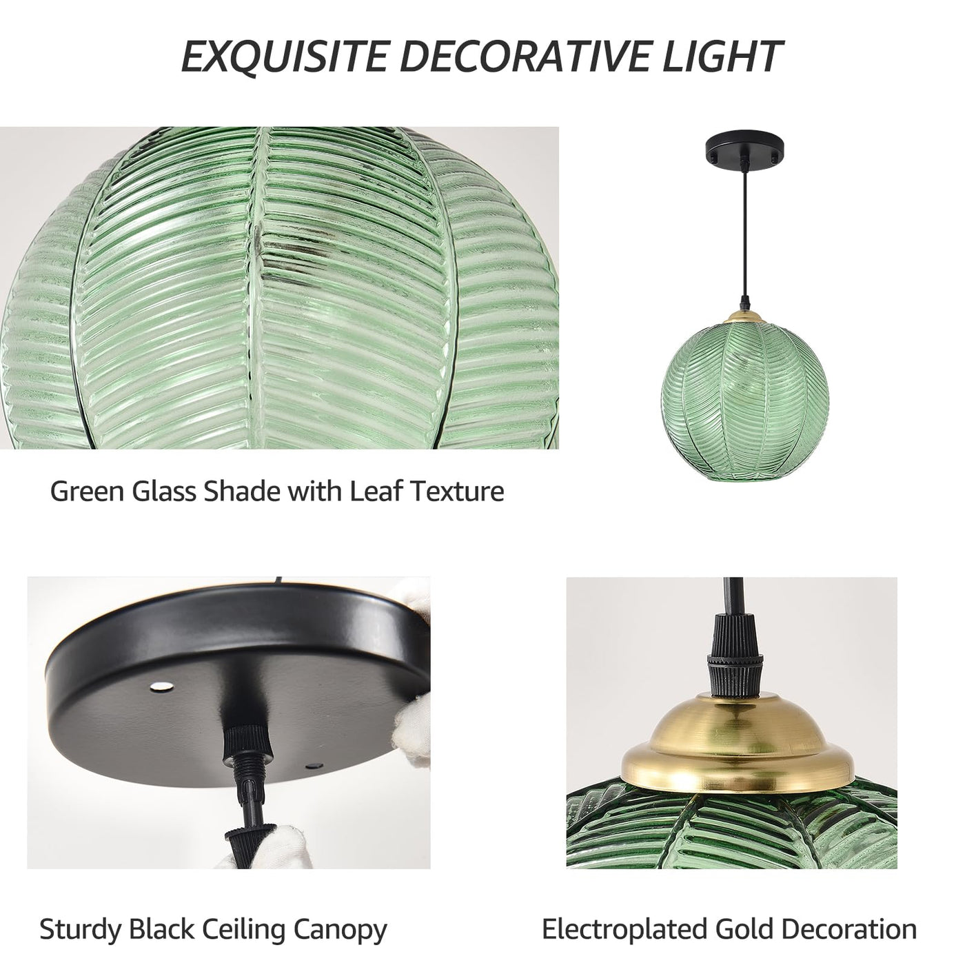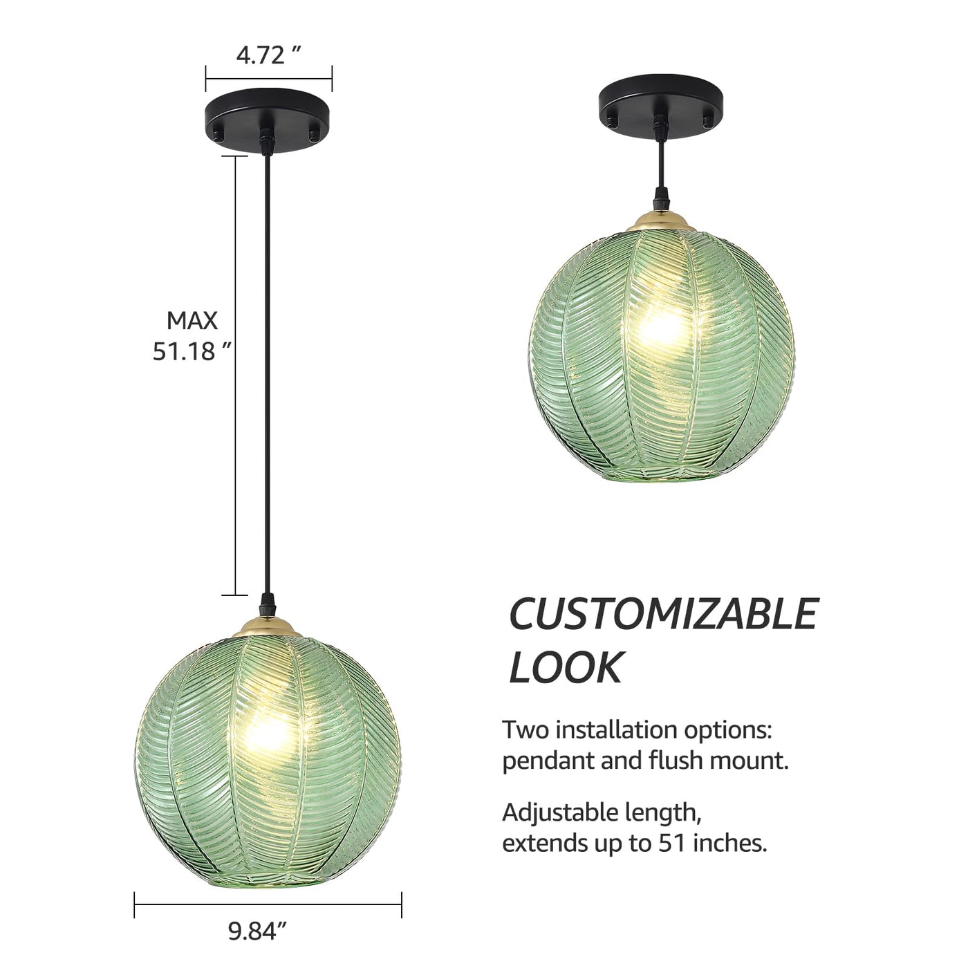 Specifications: Product Name: Testoys Green Glass Pendant Light, Single Large Globe Pendant Lighting Nordic Ribbed Ceiling Hanging Modern Ball Chandelier Light Fixture For Kitchen Island, Dining Living Room, Bedroom Material: Glass, Metal Chandelier Dimension: 1-Light Modern Chandelier Ceiling Light Fixture (D: 9.84Inch H: 51.18Inch), 3-Light Farmhouse Chandelier Island Light Fixture (The Largest Diameter Is 9.84 Inches, The Second Largest Is 7.87 Inches, And The Smallest Is 5.91 Inches. H: 51.18Inch) Bulb Type: All E26 Base Bulbs, Including Edison, Incandescent, Halogen, Led, Cfl, Etc. (Bulb Not Included, Maximum Power 60W) Applicable Scenarios: Glass Ball Pendant Ceiling Light Fixture For Kitchen Island, Dining Room, Living Room, Bedroom, Entryway, Hallway, Stairway, Office, Restaurant, Cafe, Bar, Waterfront Property, Coastal Cafe Kitchen, Condo, Beach House And So On. Chandelier Style: Modern, Mid-Century, French Country, Rustic, Vintage, Farmhouse Etc. Product Including: 1 * Green Glass Globe Cage 1 * E26 Holder With Hanging Length 1 * Chandelier Cap 1 * Installation Kit