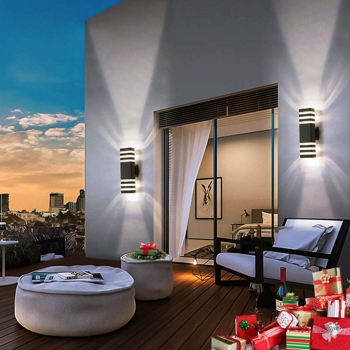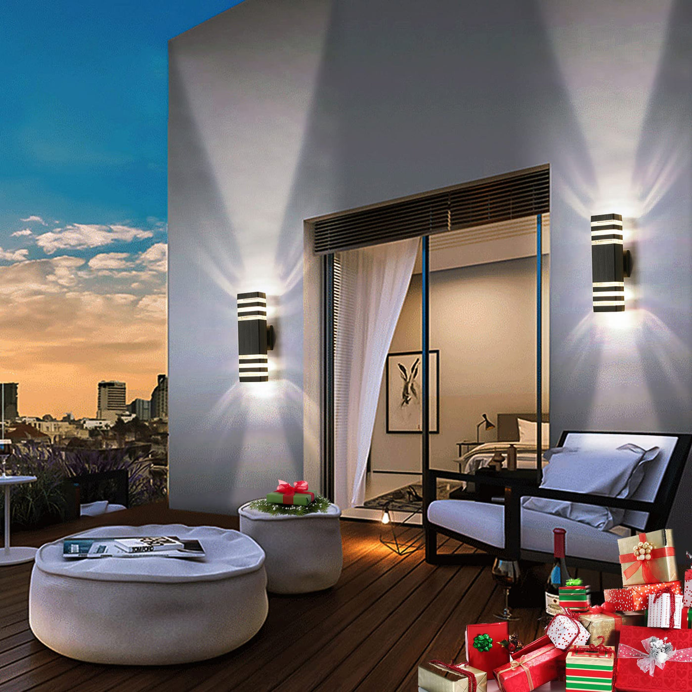 - **Sleek Design & Versatility**: Featuring a contemporary 3-layer up and down design, these matte black outdoor lights add a touch of sophistication to any exterior setting. Ideal for various applications including front doorways, patios, and commercial spaces.