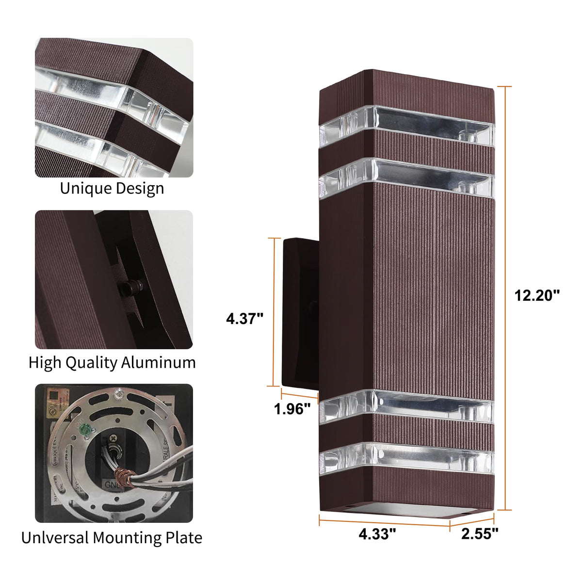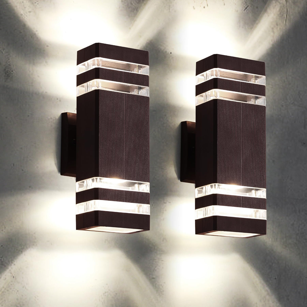 Tewei Modern Brown Outdoor Wall Lights, Waterproof Aluminum Up/Down Fixture, 2 Pack