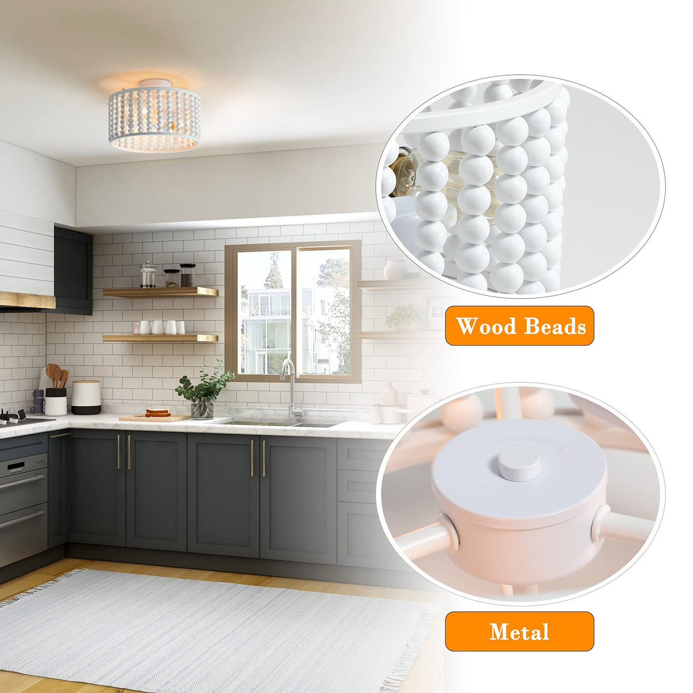 Tewei Wood Bead Chandelier, Rustic Semi Flush Mount Light Fixture For Boho Nursery & Home
