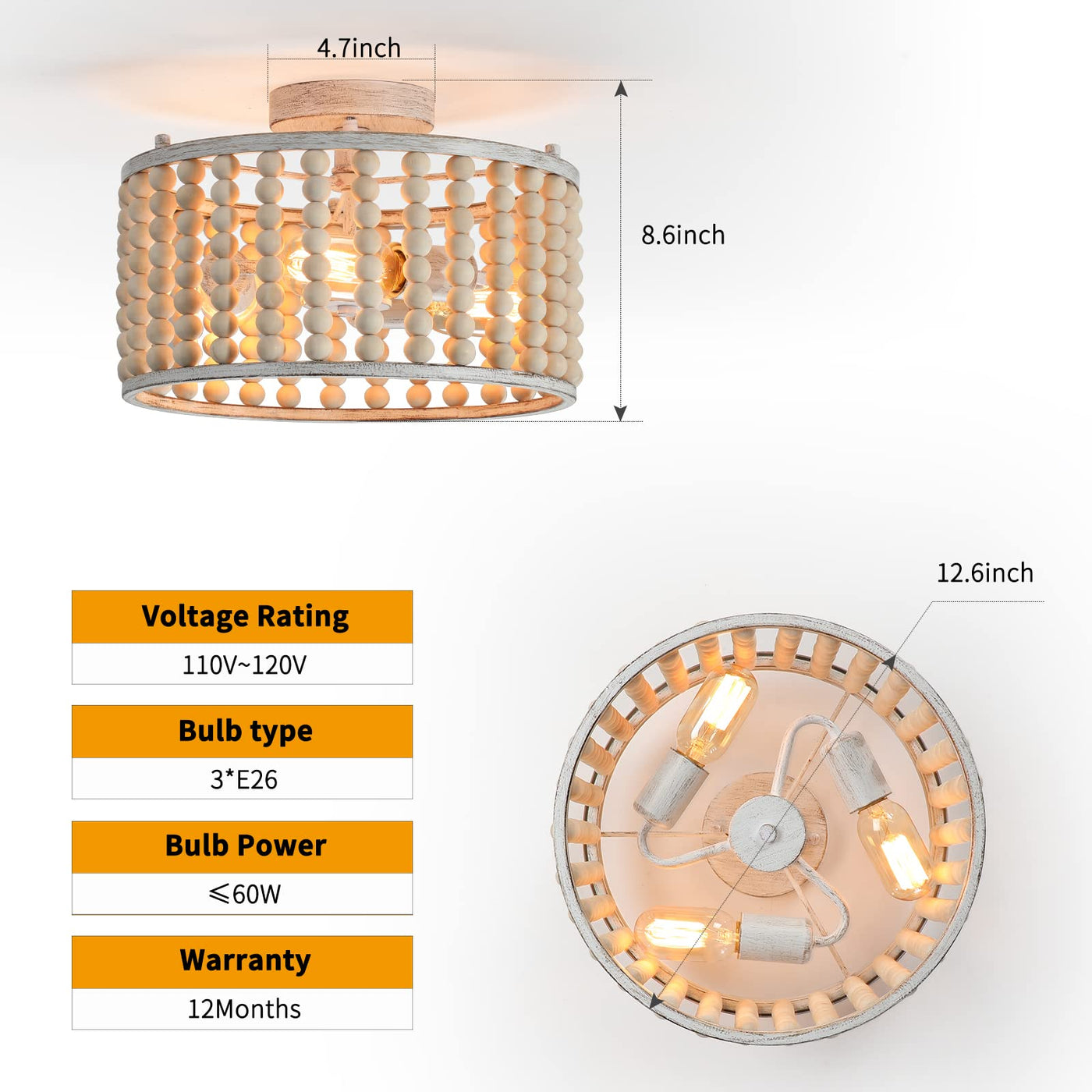 Transform your space with the Tewei 3-Light Rustic Nursery Close to Ceiling Light. This stunning farmhouse bohemian wood beaded chandelier is perfect for adding a touch of elegance to any bedroom, entryway, or kitchen.