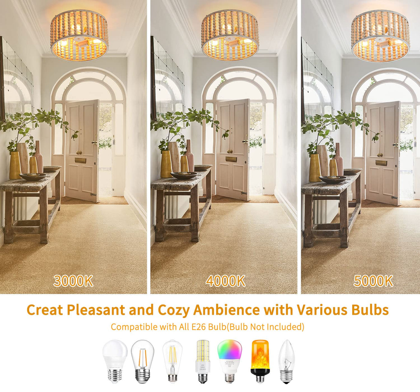 - **Artisan Design**: Crafted with 240 pieces of natural white wood beads and a round outer metal frame, this semi flush mount chandelier is meticulously beaded by hand, ensuring safety and durability.