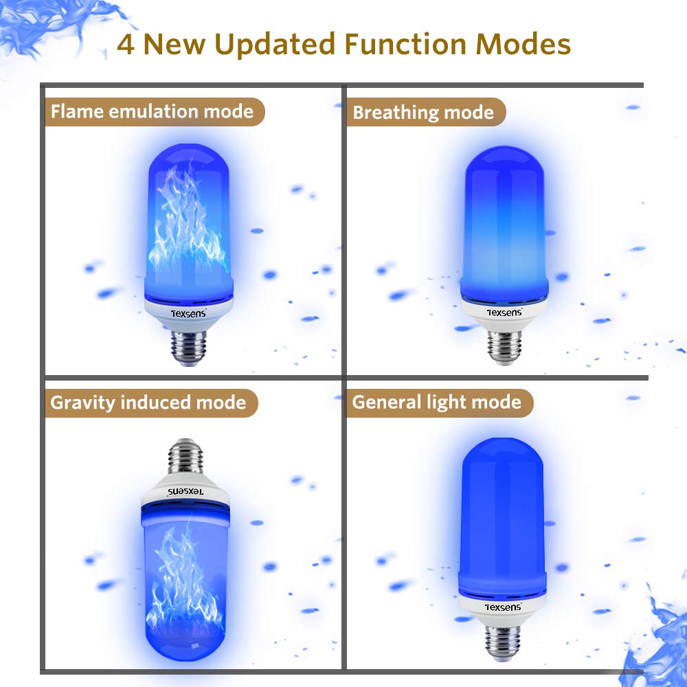 Texsens LED Blue Flame Effect Light Bulbs - 4 Modes Flickering Fire Flame with Upside-down Effect, Simulated Decorative Lights V