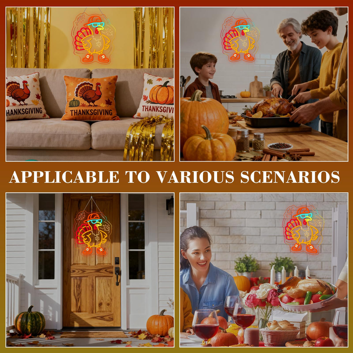 Add A Playful Twist To Your Fall D?Cor With This Cool Turkey Led Neon Sign! Featuring A Turkey Dressed In Sneakers Sunglasses And A Baseball Cap This Sign Brings Fun And Festive Energy To Any Space. Whether Its Thanksgiving Dinner Friendsgiving Or Just Seasonal Home D?Cor This Bright Multi-Color Sign Will Be The Talk Of The Table. Crafted From well-made Led Tubing It Delivers A Vibrant Glow While Staying Cool To The Touch And Energy-Efficient. The Lightweight Acrylic Backing Makes It Easy To Hang In Your Dining Room Kitchen Bar Or Restaurant. Powered By Usb Its Ready To Shine Anywhere You Need A Dose Of Holiday Humor And Cheer. From Cozy Family Gatherings To Lively Parties This Neon Turkey Will Be Your Ultimate Thanksgiving Conversation Starter.