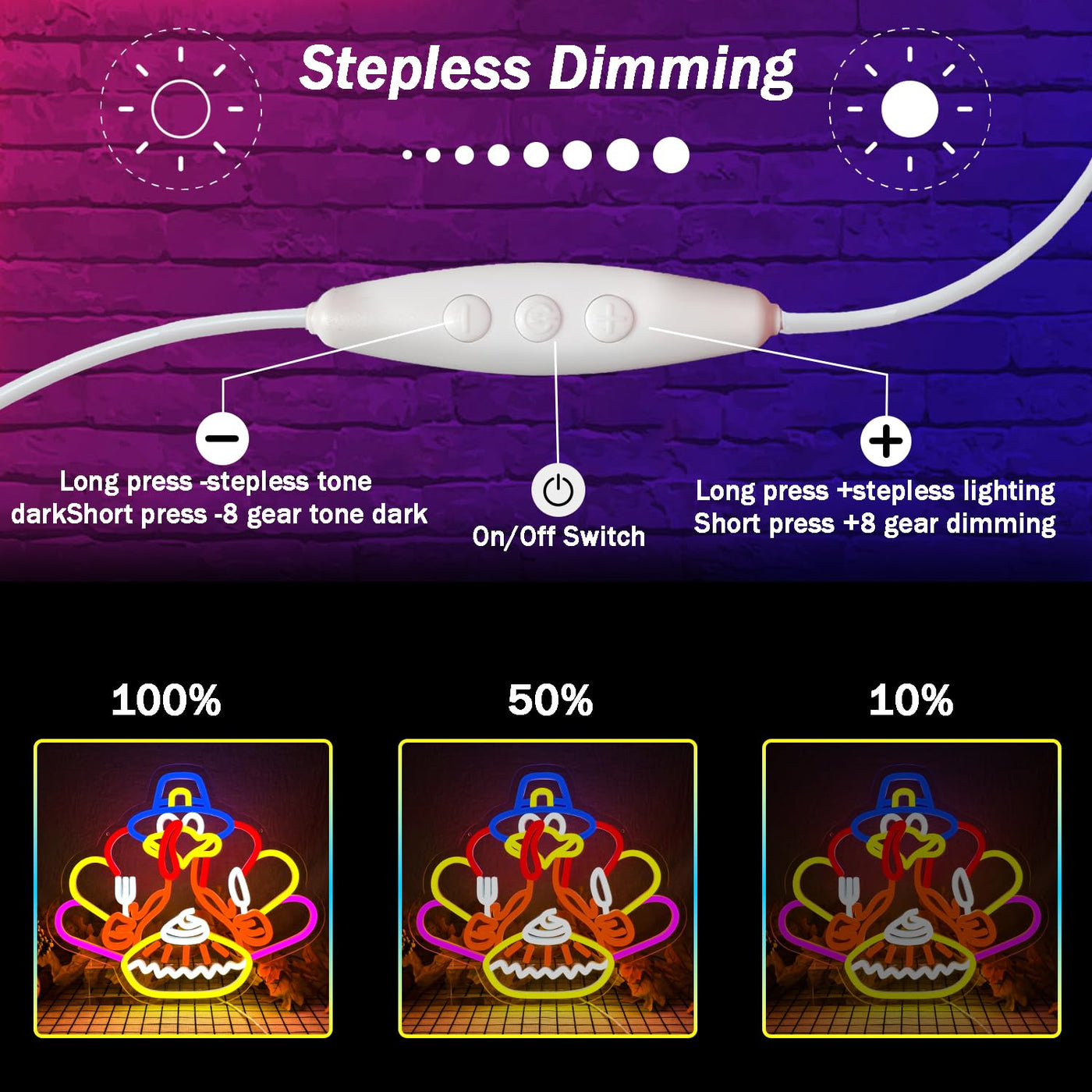 Thanksgiving Turkey Neon Sign Thanksgiving Turkey Decoration Dimmable Thanksgiving Neon Light For Autumn Room Bedroom Table Wall Decor Home Party