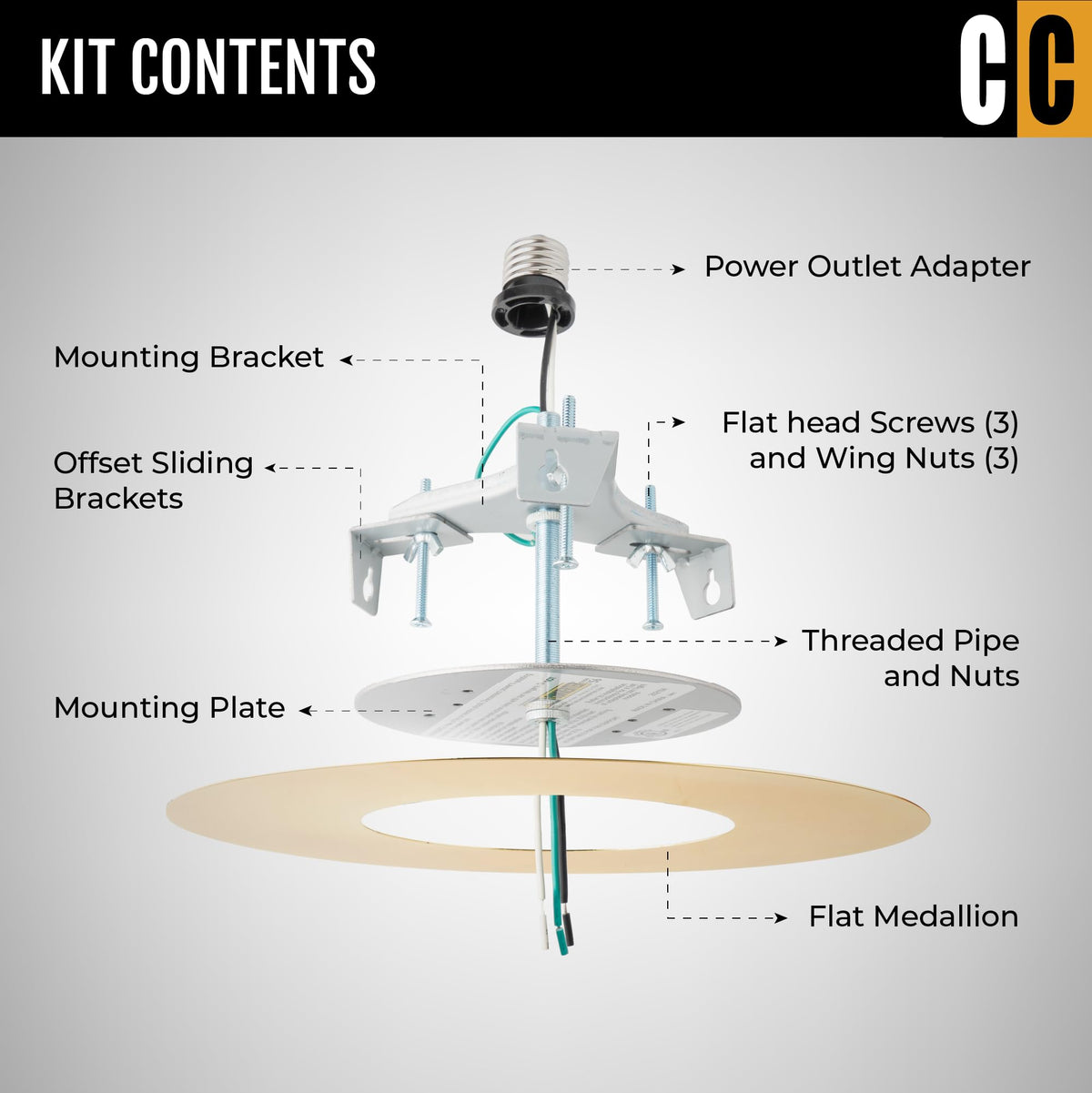 Q: How easy is it to install The Can Converter - R56?A: Installation of The Can Converter - R56 is straightforward and hassle-free. The kit includes all necessary hardware and a flat ceiling medallion, along with detailed step-by-step instructions and access to online instructional videos, making it user-friendly for both beginners and experienced DIY enthusiasts.