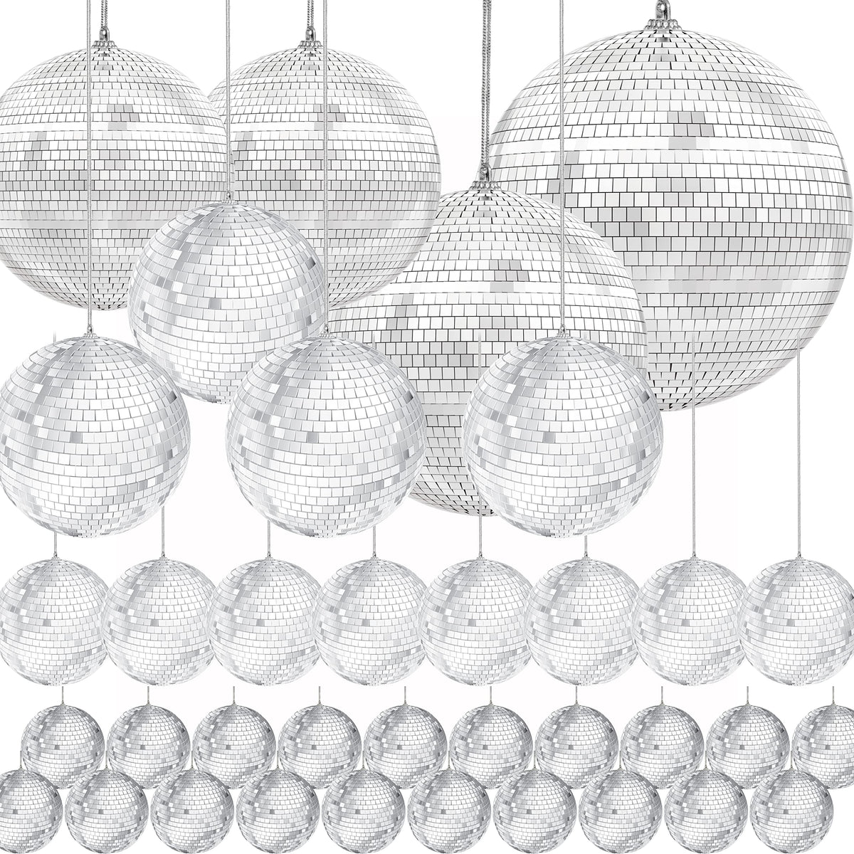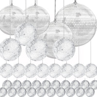 The Dreidel Company Mirror Disco Ball will make sure that you will enjoy a flashing and shiny party! This will for sure leave a lasting impression on everyone attending! Size: Our 7, 6, 4, 3, & 2 inch Material: Glass and foamed plastic Features: Our Party Mirror Disco Ball is one that everyone will enjoy. It is covered with small mirror squares, is 90% gap free and will reflect all different lights. It is very light and equipped with a secure loop with an attached string which makes it easy to hang on your desired spot. The Mirror Disco Ball will make for a great centerpiece decoration at any party such as New Year, banquets or weddings and will also transform any area into an instant dancing floor. Ideal for night club, Dance parties, Birthdays etc. Package includes: - Our 7'' Inch x1, 6'' Inch x1, 5'' Inch x2, 4'' Inch x4, 3'' Inch x8, and 2'' Inch x20 Mirror Disco Party Ball - Secure Ring with attached string