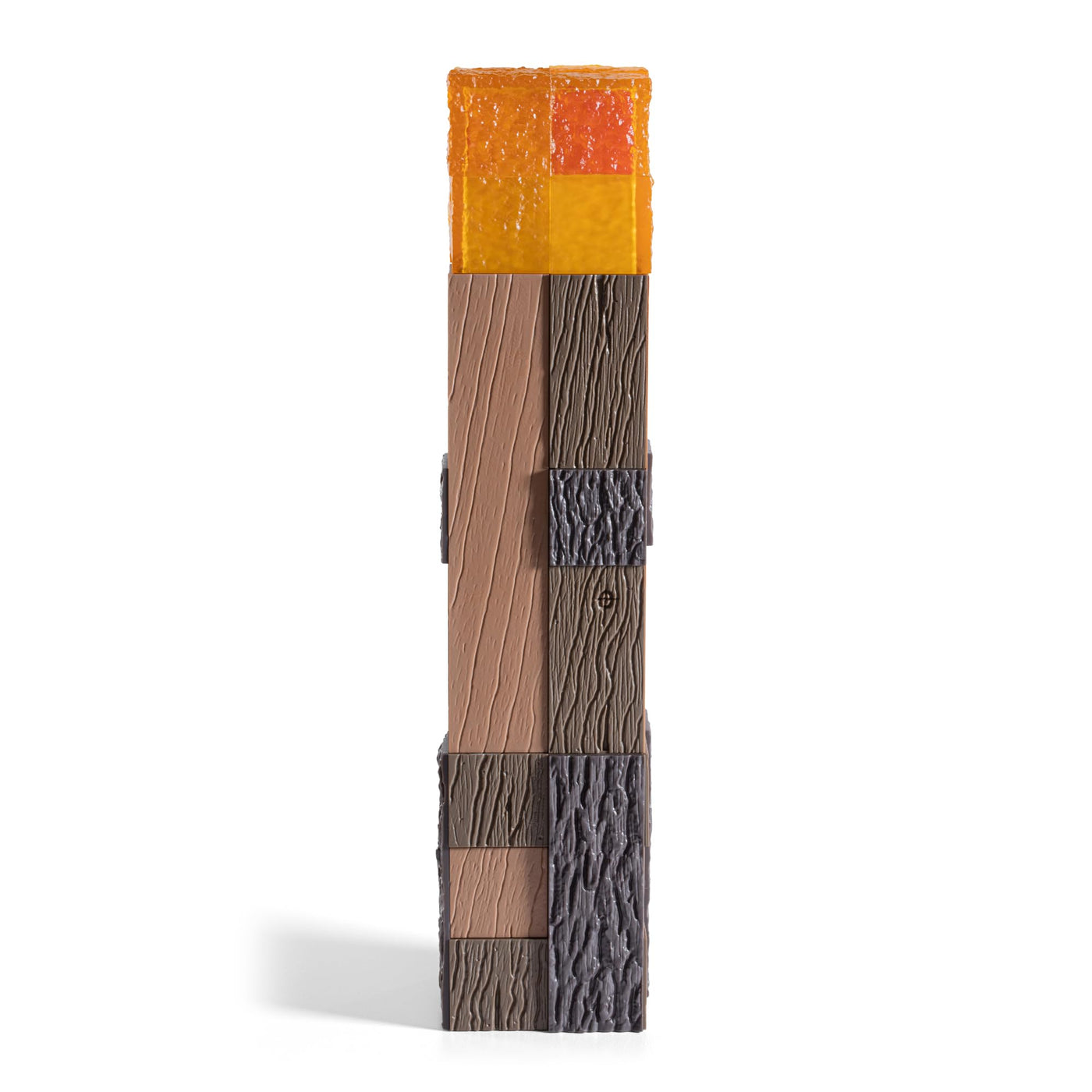 Bring your online fandom home with this detailed interpretation of Minecraft's classic torch. | Touch-activated flickering LED keeps hostile mobs out of your bedroom, game room, office, or dorm. | Measuring 10'' tall x 2.125'' square, the torch's hinged base means it can stand alone on a desk or table or hang from a wall (mounting screws and drywall anchors included) with no additional crafting required. | Coal or charcoal not required! This torch is powered by 3 AAA batteries (not included) so you can take it with you on your next real-world adventure. | For Minecraft fans ages 8+
