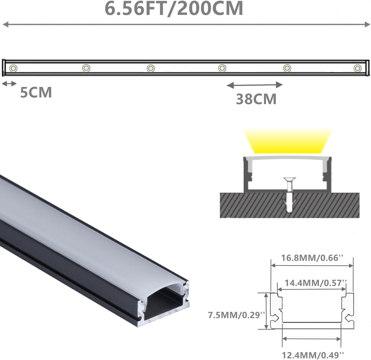 Thmoother 10-Pack 6.56Ft Pre-Drilled Countersunk Hole Led Strip U Channel Diffuser, Matte Black Flush Mounted Under Cabinet Tape
