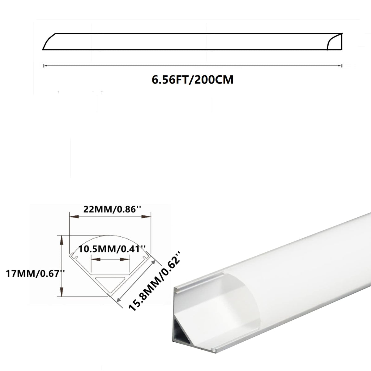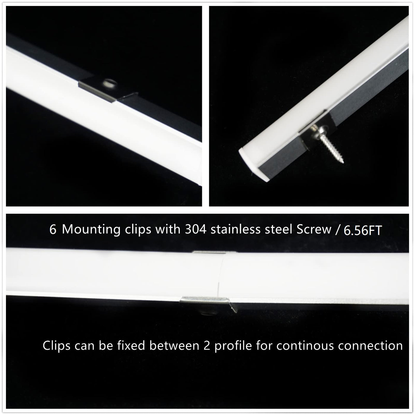 Why need a channel with diffuser ? 1.Protect the exposed strip from Dust,Moisture and inadvertent touch,extend the lifespan of the strip 2. Provide a New Professional Clean finish to the exposed fixtures,Take your LED strips to the next level 3. breake up the harshness dots from the led strip without making light too dim, evening out the lights to a fairly smooth glow. Steps for a DIY Lighting Project 1.Measure the width of the strip ( make sure it is not oversized in the channel ) and test it 2.Trim the channel and cover to a required length by hacksaw or other devices . 3.Peel off the sticky at the back of the strip ,lay the strip in the channel 4.Snap the diffuser into the slot of the V channel ,fix the end caps if needed 5.Screw the Mounting Clips into the working surface (Make sure the Pilot hole is in a straight Line ), Clamp the channel in the clips 6.Flush channel end to end and fix clips in the middle of the channel for extension 7.Wiring The Strip Can be assembled after mounting the channel or away from the working site Packing details 1.6.56FT/200CM V Shape Aluminum Channel -10 pieces 2.6.56FT/100CM Milky Cover -10 Pieces 3.304 Stainless Steel Countersunk Screw -40 Pieces 4.End Cap With Hole -20 Pieces 5.End Cap Without Hole-20 Pieces 6.Stainless steel Mounting Clips-40 Pieces 7.90 Degree Corner Connector X4