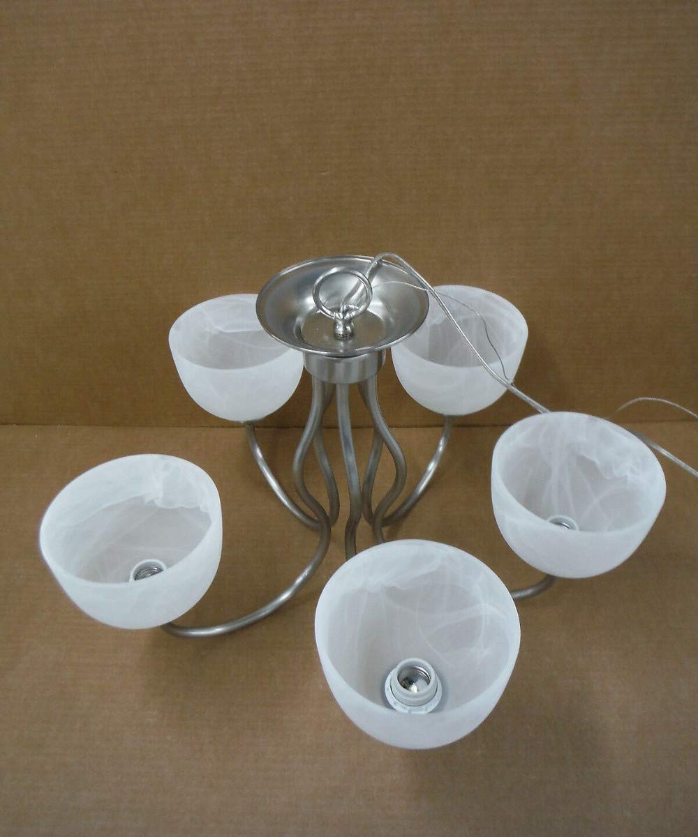 - **Elegant Lighting**: Five slender rods gracefully curve upward, suspending frosted glass shades that diffuse light beautifully, creating a soft, ambient glow.