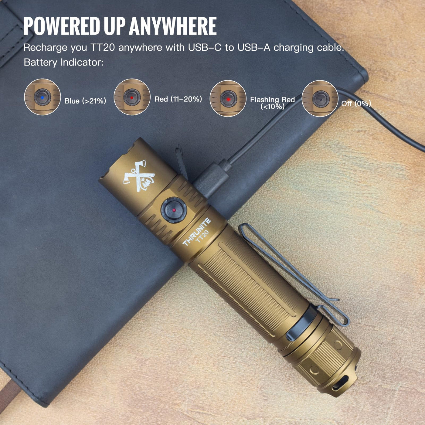 Thrunite Tt20 Tactical Flashlight, Customized Verison With The Outsider, High 2010 Lumens, Long 305 Meters Beam Distance, Usb-C