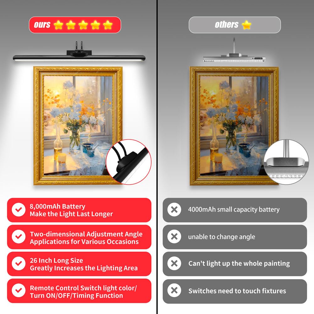 TIAUEU 26 Wireless Picture Lights, Rechargeable Battery Art Display Light with Remote Control, Dimmable/Timer Off Dartboard Ligh