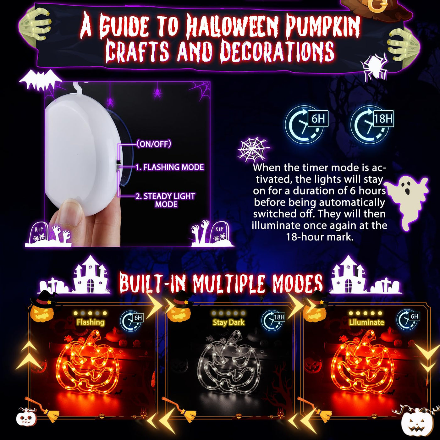 Q: How does the built-in timer function work on the Halloween window lights?A: The upgraded built-in timer function automatically activates when the lights are turned on, providing 6 hours of continuous illumination followed by 18 hours of darkness each day. This feature ensures that your decorations are lit at the same time each day without the need for manual operation.