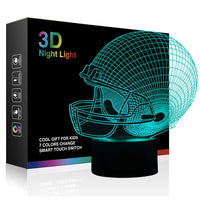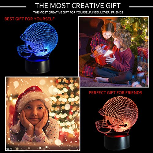 Ticent Football Helmet 3D Lamp Optical Illusion Light, 7 Colors Changing Touch Control Soccer Night Light For Christmas Gifts