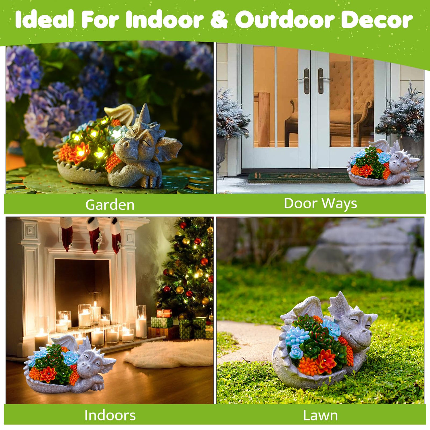 Transform your outdoor spaces with the enchanting Solar Dragon Statue featuring Succulent Lights. This delightful garden decor piece is perfect for adding a whimsical touch to any balcony, lawn, or garden.