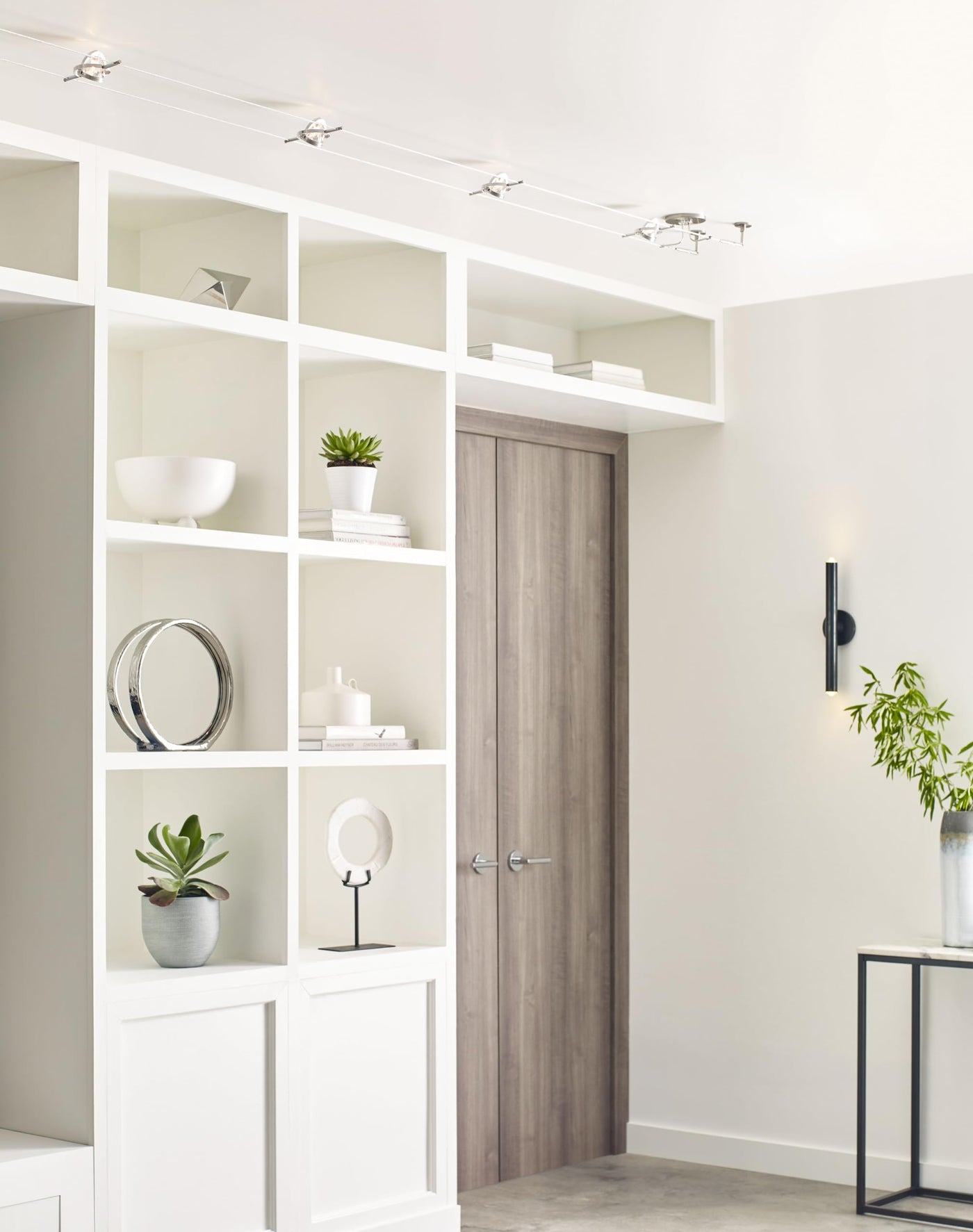 From Generation Lighting, the brand formerly known as Tech Lighting | Includes all you need for a 5-light Kable Lite System, Louvers and LED Bulbs Sold Separately | Featured in Nickel Finish | Dimmable and Compatible with LED Bulbs