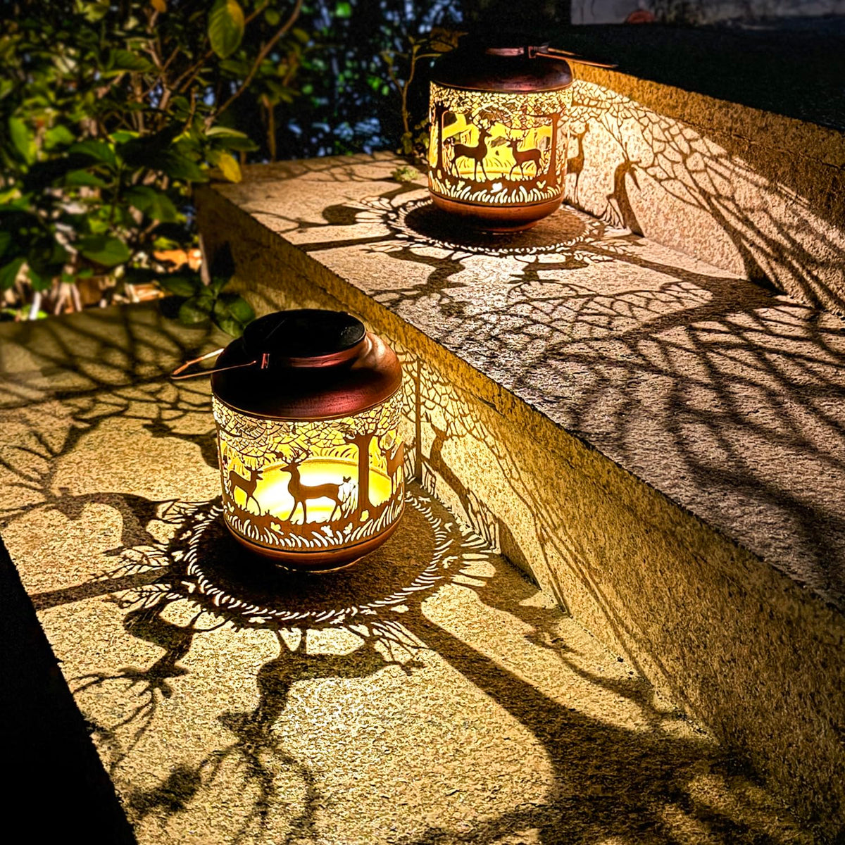 Perfect Garden Decorations: The deer solar lantern features a unique hollow-out design that casts beautiful patterns in dim lighting. Its antique bronze finish adds an artistic touch, making it ideal for gardens, backyards, and sidewalks.