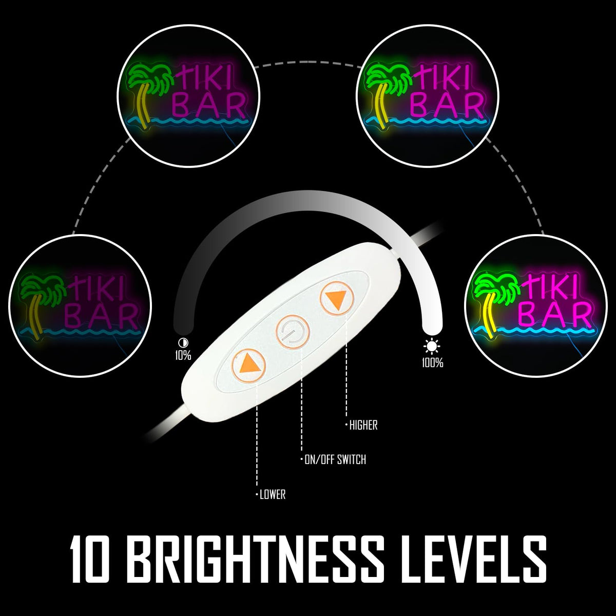 Q: Is the Tiki Bar Neon Sign safe to use?A: Yes, the Tiki Bar Neon Sign is designed for safety and durability. Unlike traditional glass neon signs, it does not generate heat, making it safe to touch. It operates on a 5V power adapter and has a brightness adjustment feature for added convenience.