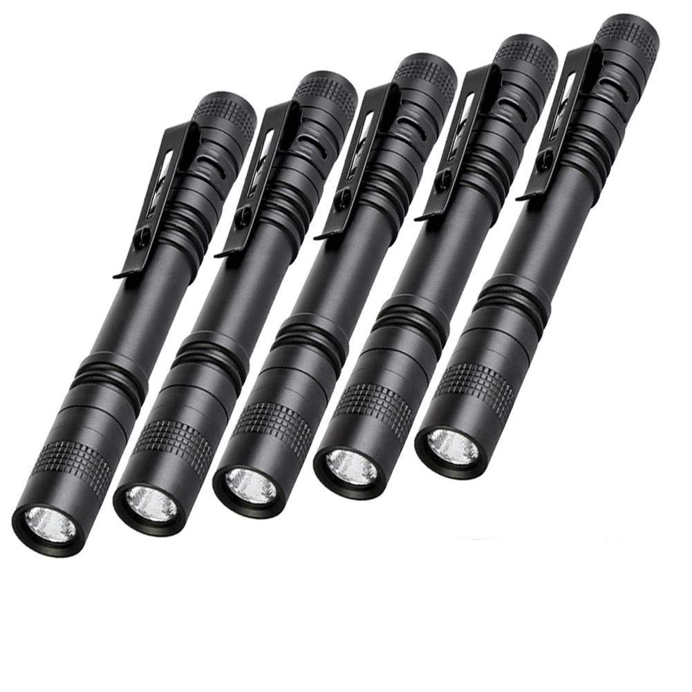 Tileon 5Pcs Pen Flashlight Set, 500 Lumen Led Mini Pocket Light, Black Aluminum Clip Design