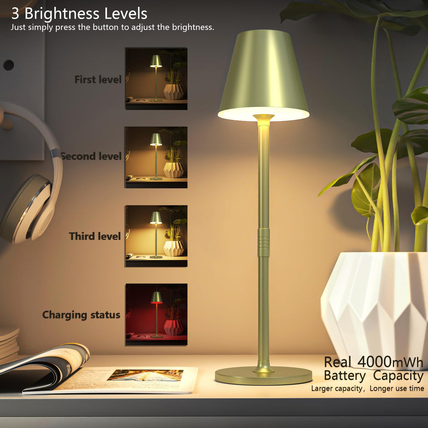 Package Includes: 1X Led Cordless Table Lamp 1X Us Plug Charging Cable 1X User'S Manual Specification: Item Type:Table Lamps Light Source: Led Input Voltage(V): 85-265 Cri (Ra≫): 80 Working Lifetime(Hour): 50000 Working Temperature(?): -30 - 80 Lamp Body Material: Iron Certification: Ce, Rohs Warranty(Year): 2-Year Packaging &Amp; Delivery: Selling Units: Single Item Single Package Size: 37X11X11 Cm Single Gross Weight: 0.610 Kg Creating A Comfortable Atmosphere To Your Restaurant , Bedroom, Bar, Coffeeshop,Reading Room And Office And So On. Charging Instructions: Plug The Charger Directly Into The Dc Port At The Bottom Of The Product. Theindicator Light Of The Charger Changes From Green To Red. When The Indicator Light Turns Green, It Means That The Battery Is Fullycharged. Tip: Please Be Sure To Use The Original Charger For Charging To Avoid Damage Tothe Lamp. Plug-In Charging: 3-4 Hours Of Charging, 12-15 Hours Of Continuous Use.