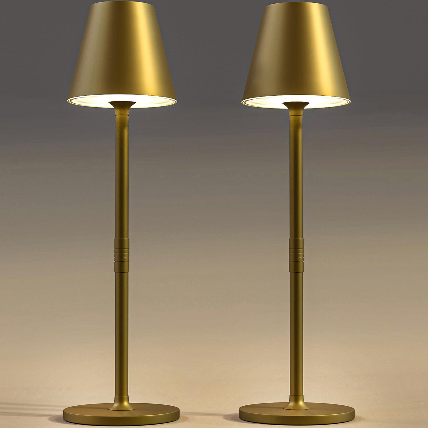 This cordless table lamp features a durable iron body with a sophisticated bronze finish, providing both aesthetic appeal and robust performance. The LED light source ensures energy efficiency and longevity, with a working lifetime of up to 50,000 hours. Designed for convenience, this lamp is rechargeable, allowing for flexible placement without the constraints of power cords.