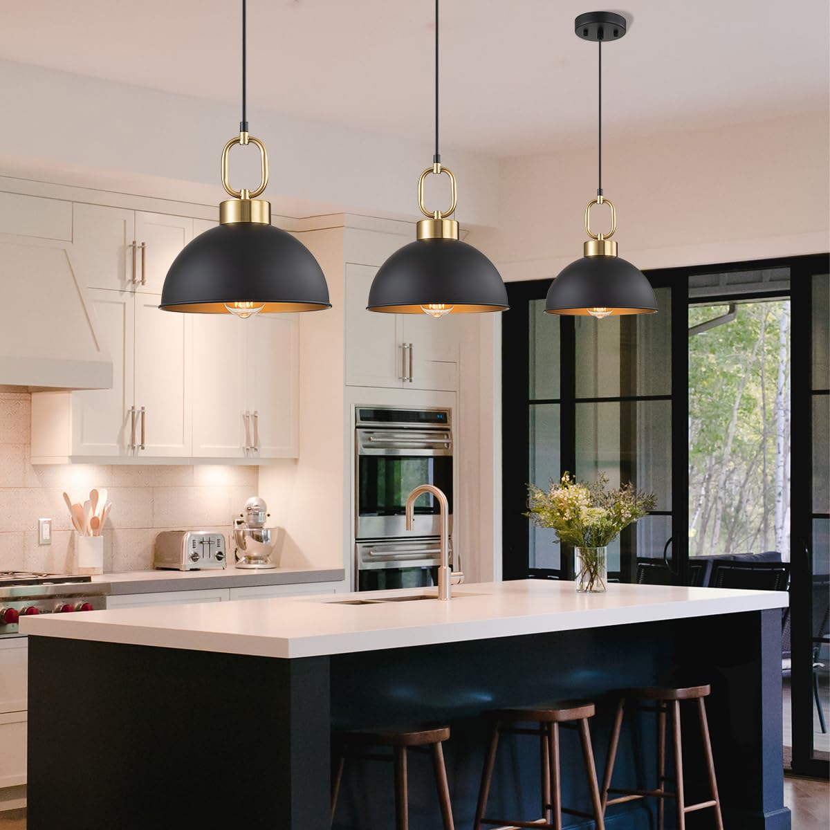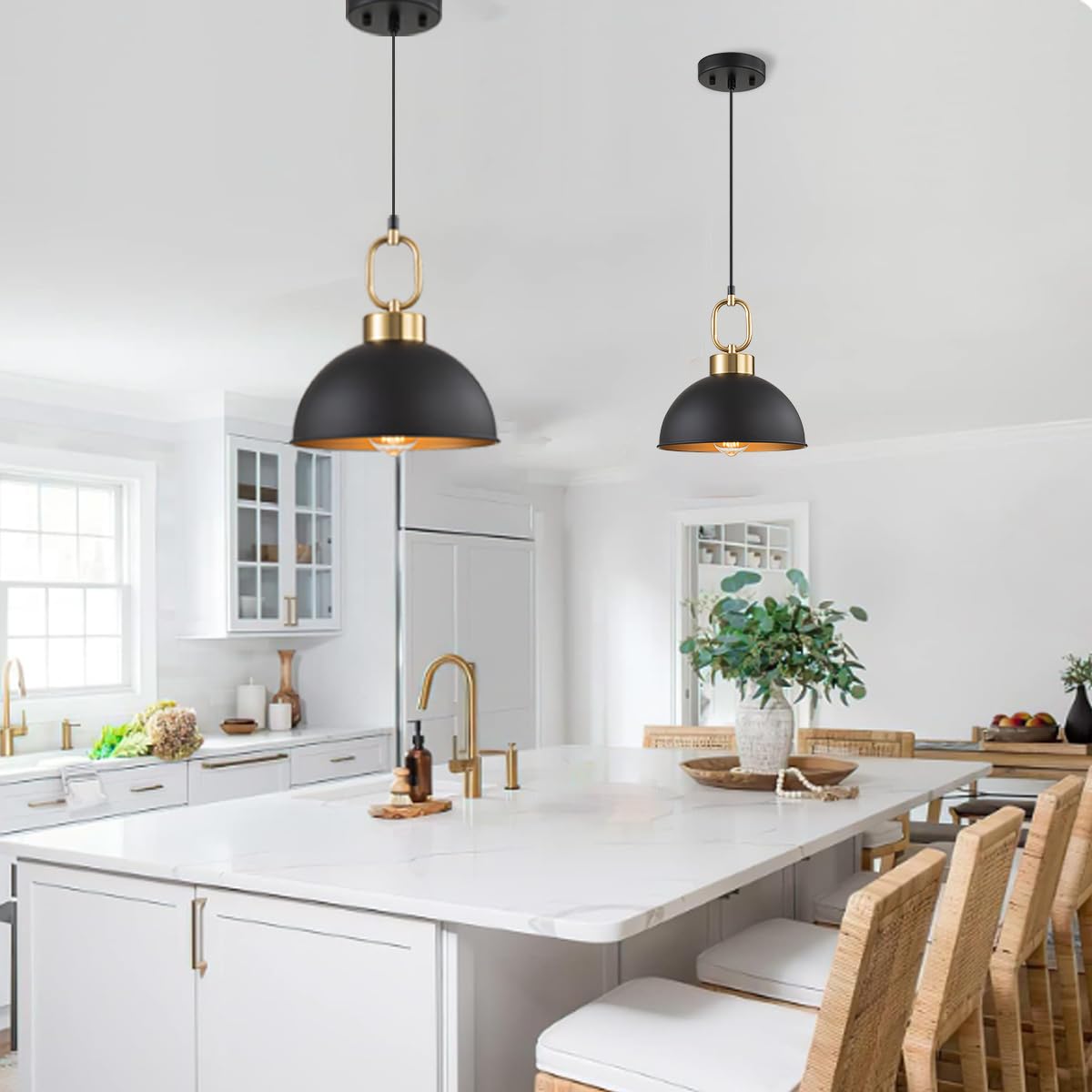 Timeless Industrial Modern Design: This pendant light showcases a classic dome silhouette with a chic gold top, enhancing the elegance of any room. The light-gold painted interior beautifully reflects light, creating a warm and inviting glow.