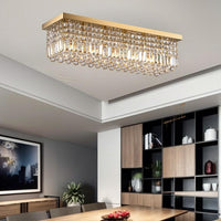 Tinkoso 59-inch Modern Crystal Chandelier,K9 Crystal Rectangle Chandelier for Dining Room,Kitchen Island Adjustable Hanging Pendant Light Fixture,Gold Brass